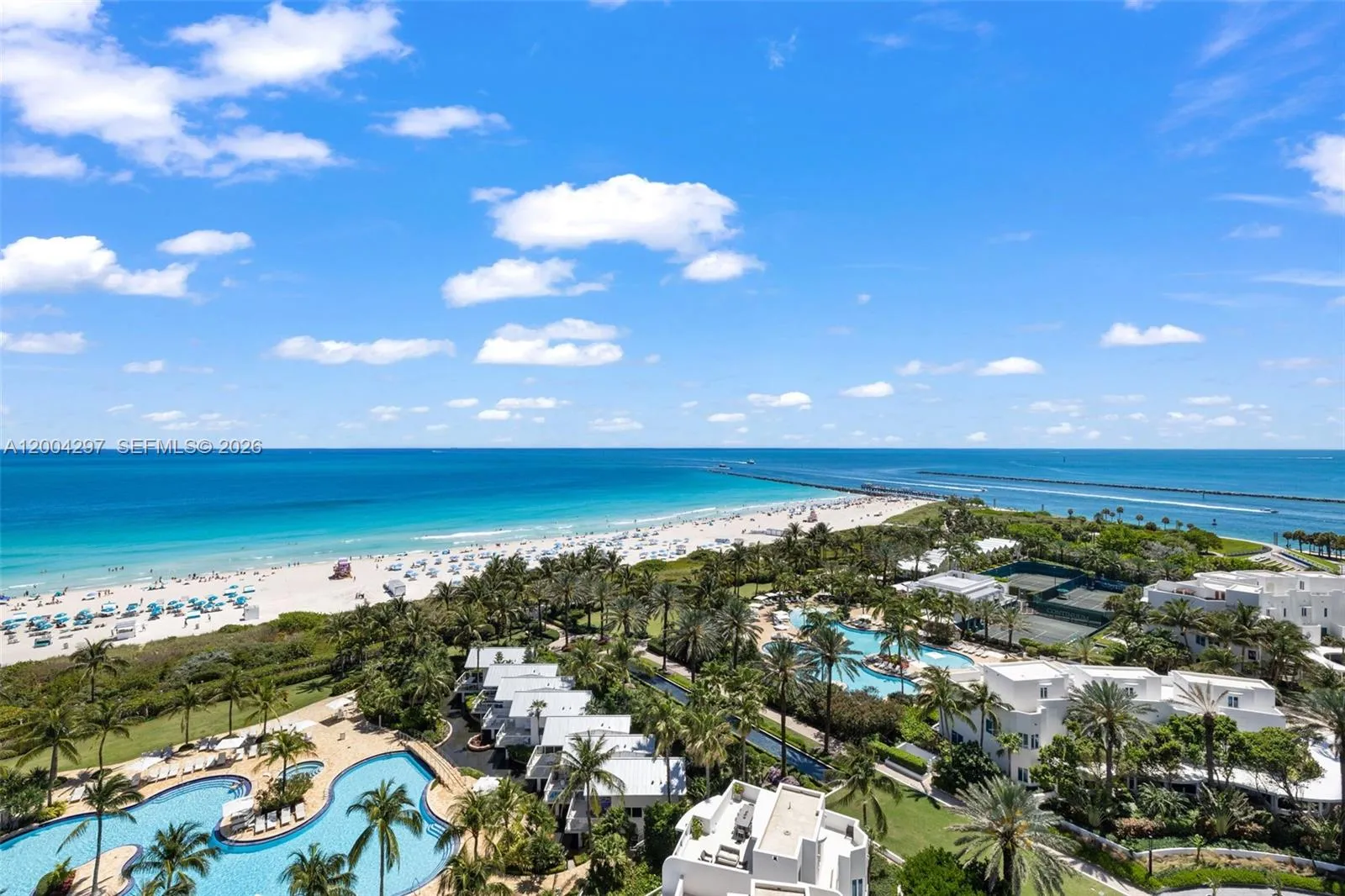 A beautifully appointed residence professionally designed and decorated combining two units into an expansive 3,497sq.ft. of refined living space. The layout includes there spacious suits, a den converted into a fourth suite, a media room and four oceanfront balconies. Residents of Continuum enjoy an unparalleled resort-style lifestyle with world-class amenities including beach and pool service, al-fresco private restaurant, two lagoon-style pools, a dedicated lap pool and three clay tennis courts with a pro-shop. The expansive 23,000sq.ft. gym and spa offers a full range of classes and wellness services, complemented by concierge, valet, security and exceptional service throughout .