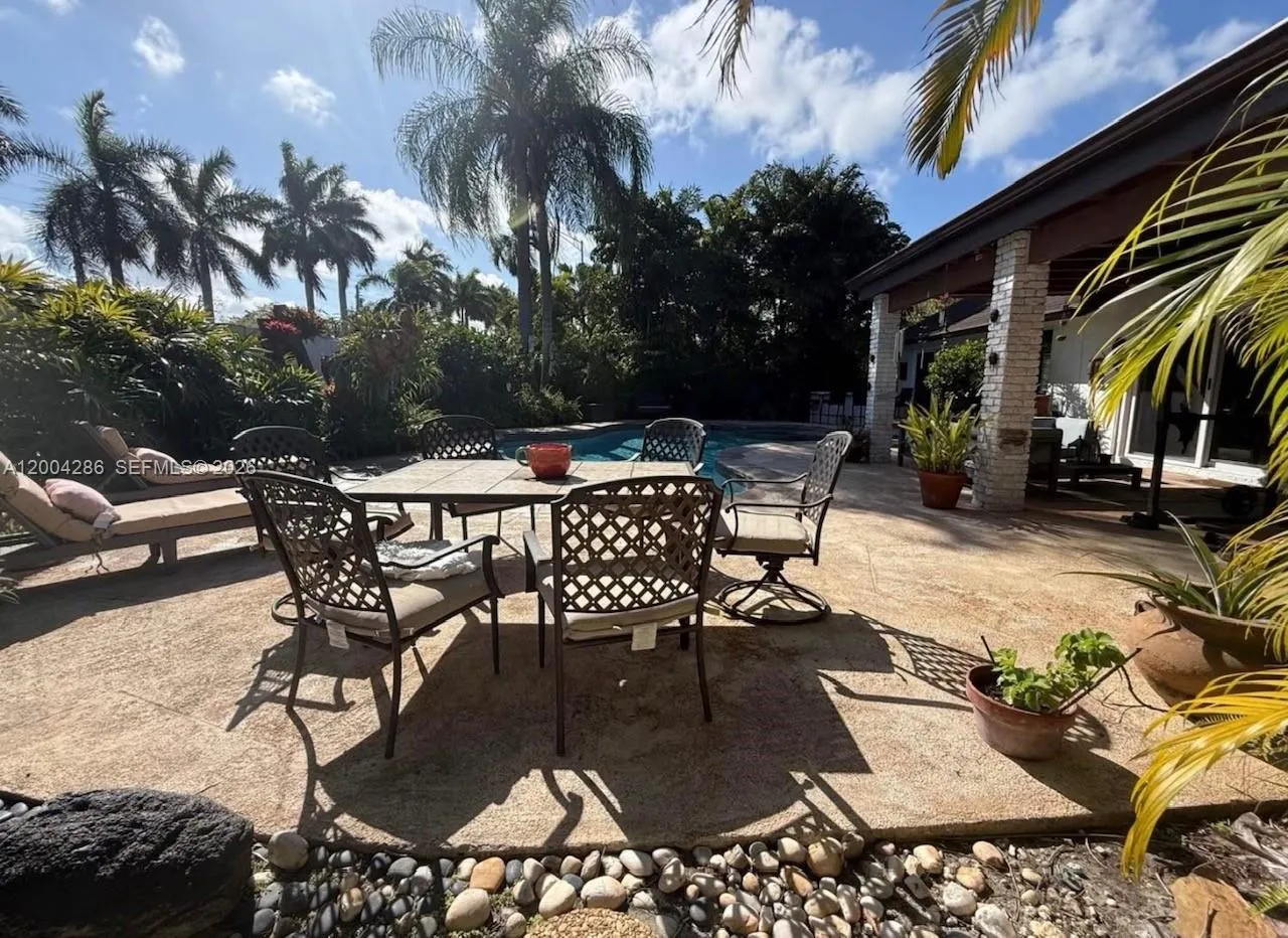 Welcome to your own slice of paradise in Calusa Club Estates! This beautifully remodeled 4 bed/2 bath pool home offers the perfect blend of comfort, style, and Florida living. Step inside to soaring ceilings, sun-filled open spaces, and a gorgeous, oversized kitchen island ideal for gatherings. The modern kitchen includes a coffee station and sleek stainless-steel appliances. Large sliding doors throughout the home bring the outdoors in, opening to a sparkling pool and lush landscaping. With a new roof, newer A/C, and Pool & Lawn care included, you can simply relax and enjoy. Located minutes from the Turnpike, Kendall Drive shops, and top-rated Calusa Elementary (STEM Gold). Pets welcome with a deposit. Easy to show—come experience this tropical retreat.