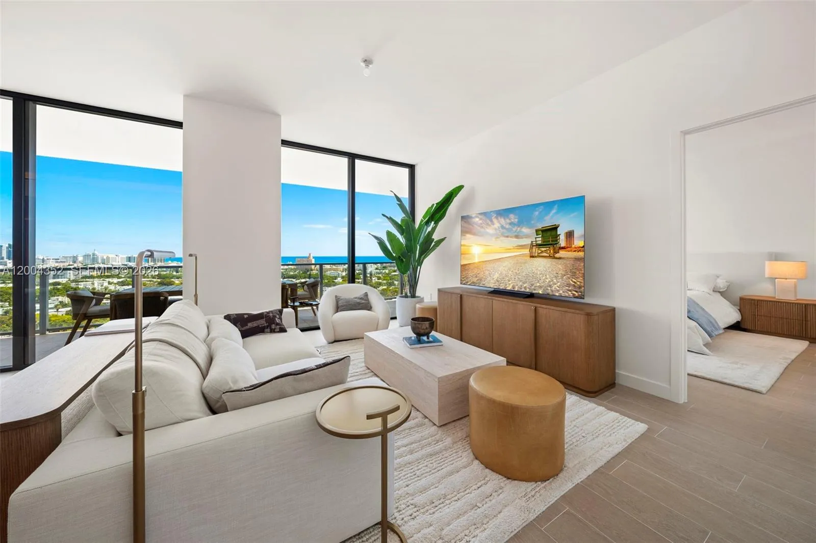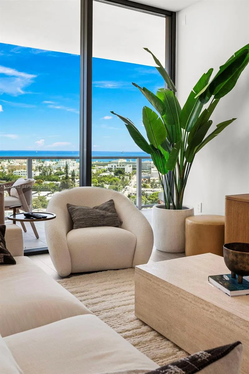 Beautifully appointed seasonal rental – available May 1, 2026 through Jan 2027. High floor two bed, two and a half bath with oversized balcony and unobstructed Ocean views at Five Park Miami Beach. 1,451 sq ft of interior space, fully furnished by Restoration Hardware. Split floor plan, large living room with 10-foot ceilings, and floor-to-ceiling windows. Custom kitchens with Gaggenau appliances, Italian oak kitchen cabinetry, and quartzite countertop. Primary suite features a marble bathroom with oversized shower, and a generous walk in closet. Five Park is the newest full-service luxury building in the most sought-after neighborhood in Miami Beach. It offers its residents extensive amenities, including two pools with views of the Bay, a restaurant, bar & lounge on the pool deck, wellness & fitness areas, and a spa, two house cars, and electric gold cart, as well as access to a private beach club. Other amenities include a co-working studio with private offices, a screening room, a children’s play area & teen lounge.