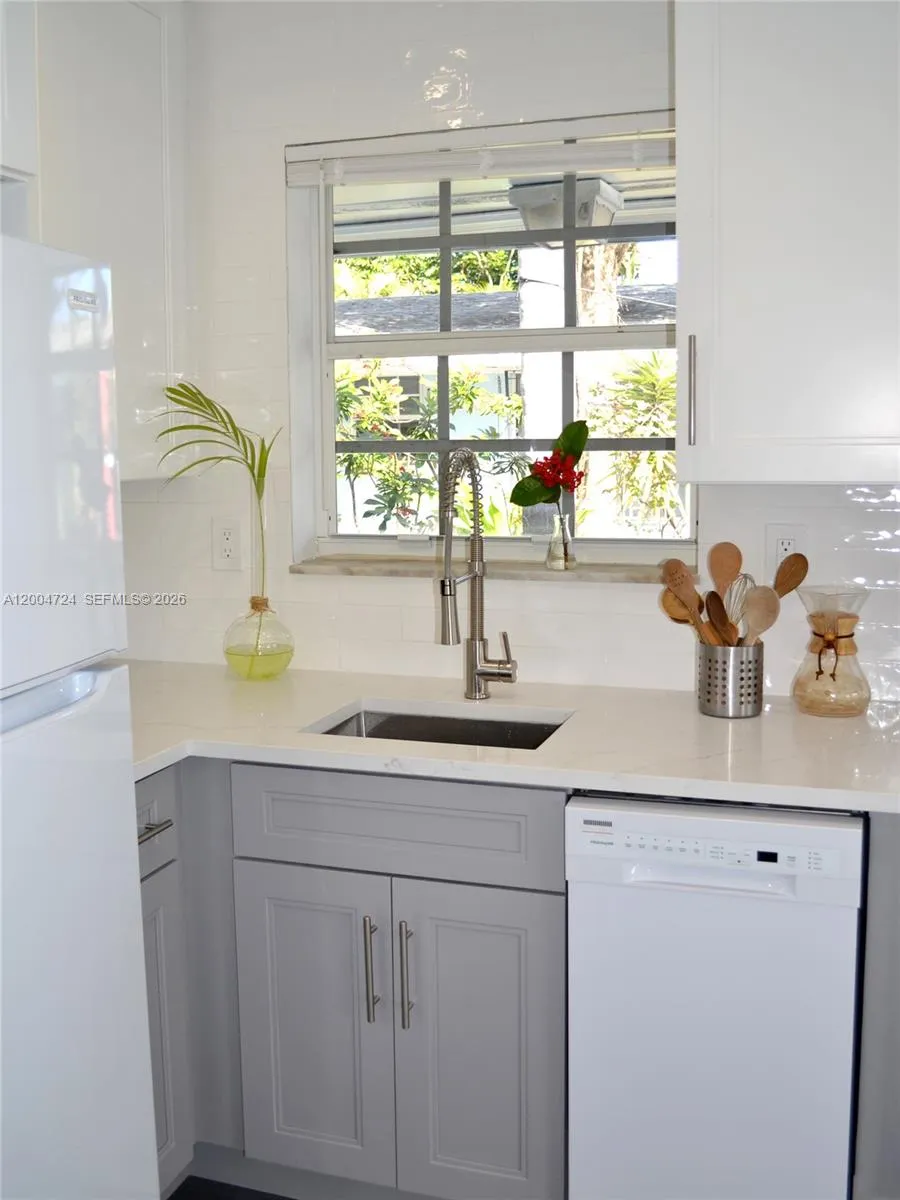 Completely renovated unit with high-end finishes throughout. Features include beautiful quartz countertops, tile backsplash, new porcelain flooring, recessed lighting with dimmer switches, and a spacious 10×18 bedroom. Open-concept living area offers excellent natural light and overlooks the pool through multiple windows.rnLocated within a secure gated property with keypad entry, exterior security cameras, abundant private parking, and an inviting resort-style common area featuring a beautiful pool and outdoor seating.rnEnjoy added privacy with only one shared wall. Nestled in a desirable Wilton Manors neighborhood just a half mile from Wilton Drive dining, shopping, and nightlife, and only 10–15 minutes from downtown Fort Lauderdale and area beachesrnrnAnnual unfurnished lease available beginning Jun 1st. Video tour link available upon request. Cats welcome, no dogs