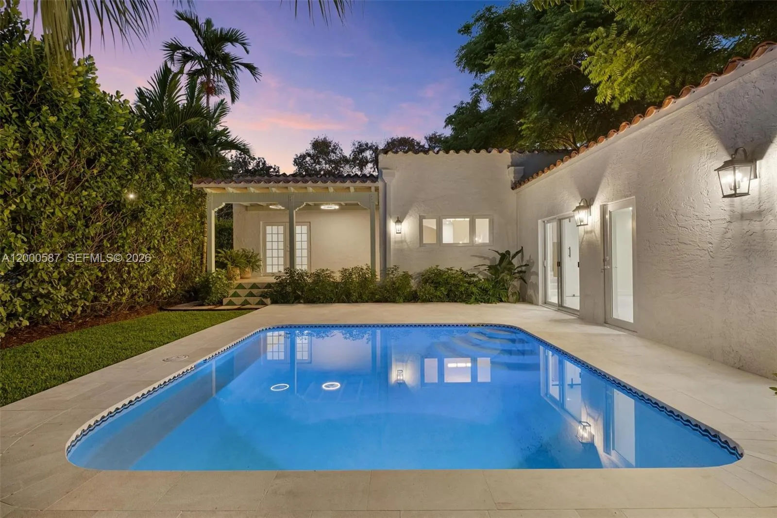 Experience a graceful blend of timeless architecture and sophisticated living. Located in the Golden Triangle neighborhood of Coral Gables, this historic gem restored by C. Cubica Arquitectos, features 3 bedrooms, 3 baths, a pool with an elevated covered terrace that leads into a gourmet kitchen with premium Miele appiances, custom oversized onyx island with seating, and brand new terrazzo flooring. The impressive living room features original pecky cypress beams and fireplace while all of the bedrooms have new wood flooring and custom crafted closet doors. All plumbing and electrical systems have been updated with impact glass throughout. Renovated to historical detail this home is truly one-of-a kind.