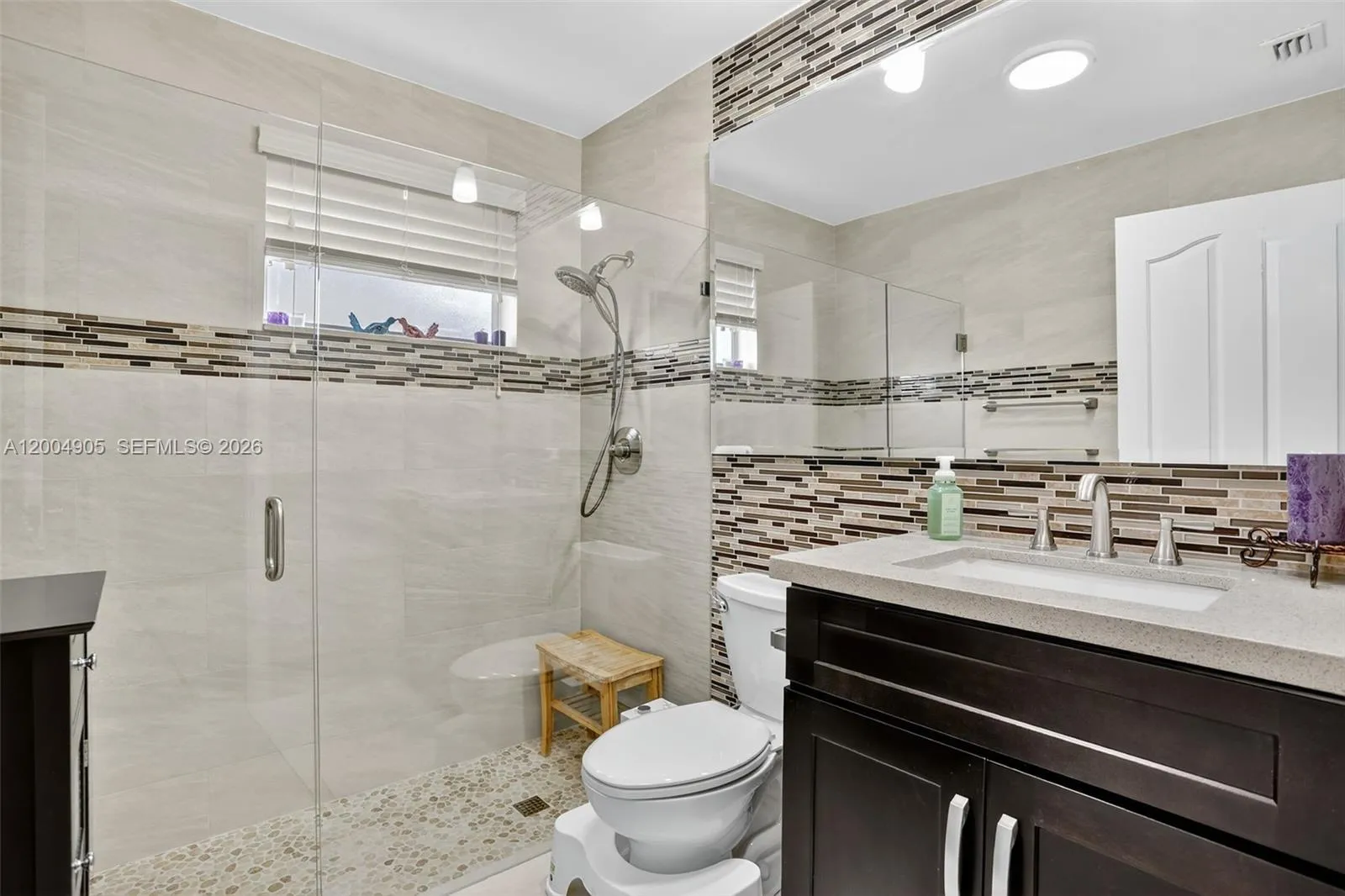 Spacious 3/2 waterfront home with over 2300 sqft of living area. Open floor plan with oversized kitchen featuring center island, abundant cabinets, and plenty of counter space. Primary suite offers updated flooring, walk-in closet, and spa bath with dual sinks, soaking tub, and step-in shower. Large secondary bedrooms and remodeled guest bath. Enjoy serene sunsets from your screened patio and large yard. Roof 2016, new A/C and water heater 2023, full storm protection, and no HOA.