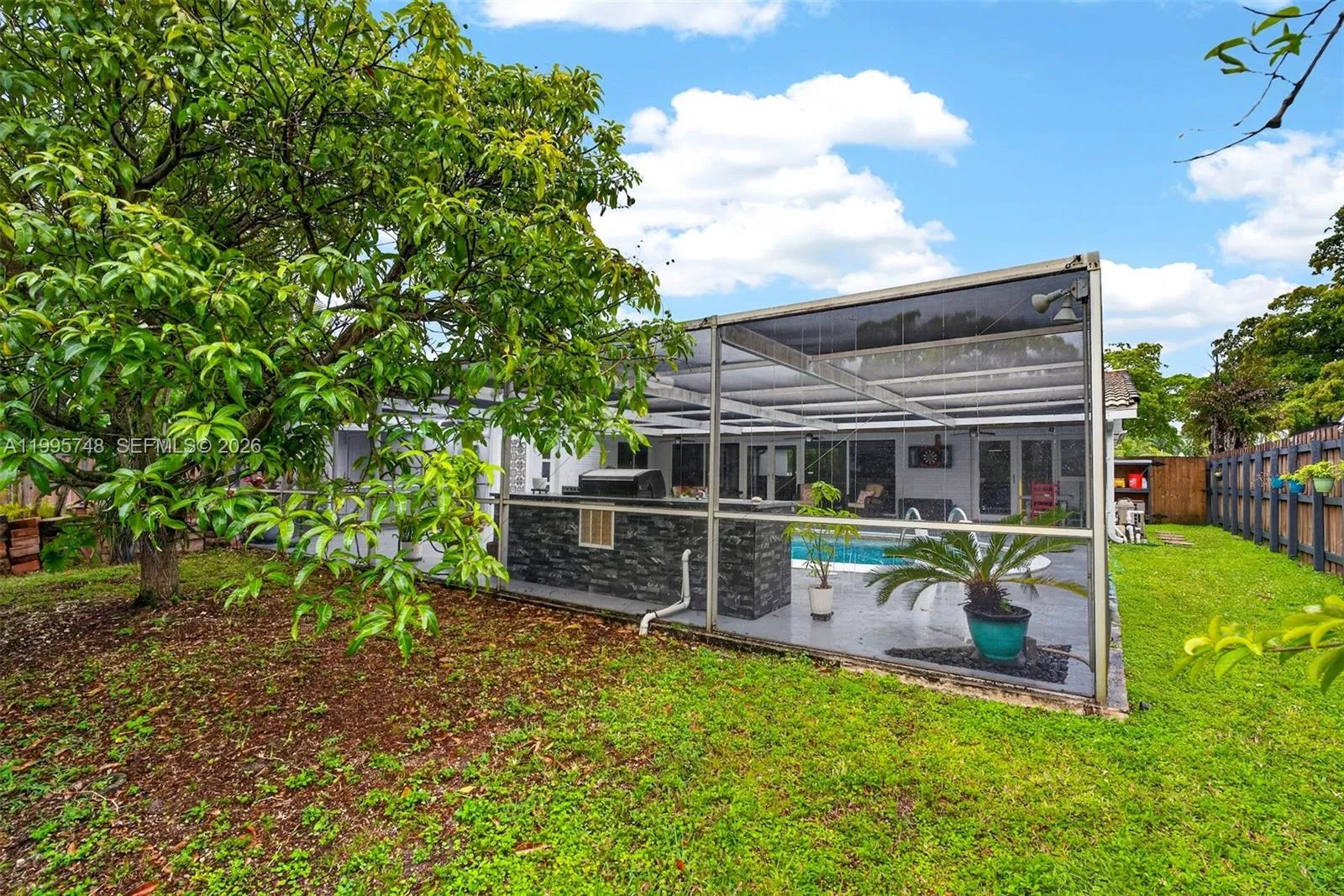 FIRST SHOWINGS THURSDAY April 23 at 2:30 pm.rnWOW! Welcome to your private oasis—this stunning, fully renovated pool home in Hollywood Hills truly has it all. Open House April 25 from 12 – 3 pm!rnrnThis one-story gem features 3 spacious bedrooms and 2 beautifully updated bathrooms, plus a separate 1-bedroom, 1-bath efficiency with its own private entrance—perfect for guests, in-laws, or rental income.rnrnStep inside to find fully renovated upgrades – sleek porcelain tile flooring throughout, a modern kitchen with newer appliances, and stylishly upgraded bathrooms with contemporary finishes. Impact windows and sliding doors provide both peace of mind and energy efficiency.rnrnEnjoy a resort-style backyard complete with a sparkling pool, screened-in patio, outdoor kitchen, and even an outdoor shower—ideal for entertaining year-round. The large, fully fenced yard also features mature mango and soursop trees, adding a tropical touch to your everyday living.rnrnAdditional highlights include a spacious circular driveway, a dedicated laundry room with full-size washer and dryer, and NO Association! rnrnIdeally located just minutes from Hollywood Beach, shopping, dining, and more. rnrnThis is the one you’ve been waiting for—schedule your showing today!