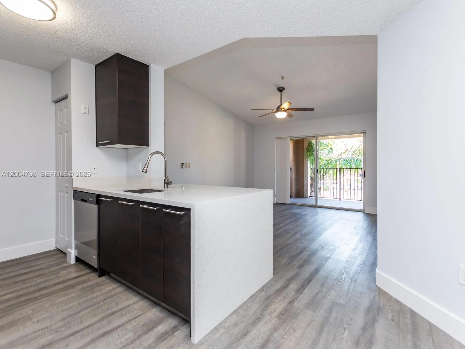 Professionally remodeled apartment! Updates include flooring, modern cabinetry, and stainless steel appliances. The space has been designed for functionality, featuring an open-concept kitchen and living area perfect for both everyday living and entertaining. This home also offers added protection with impact windows and features new blinds throughout, including blackout shades in the bedroom for enhanced comfort and better rest. Located in a friendly neighborhood, this stunning modern gem won’t last long—schedule your tour today!
