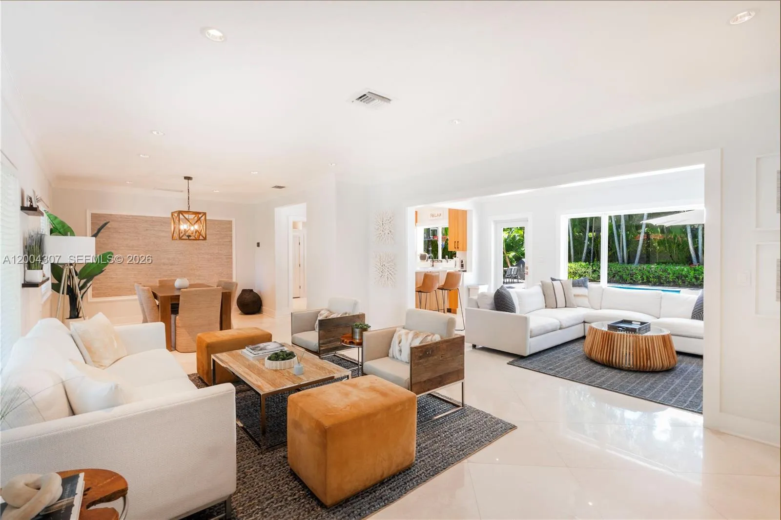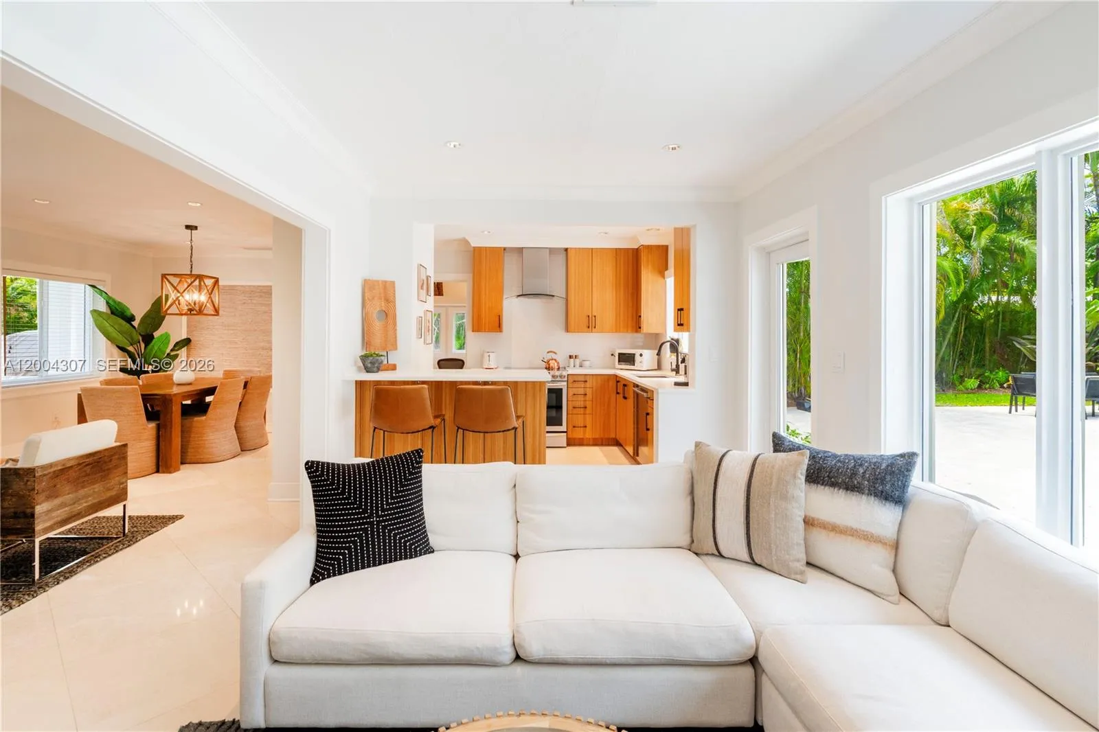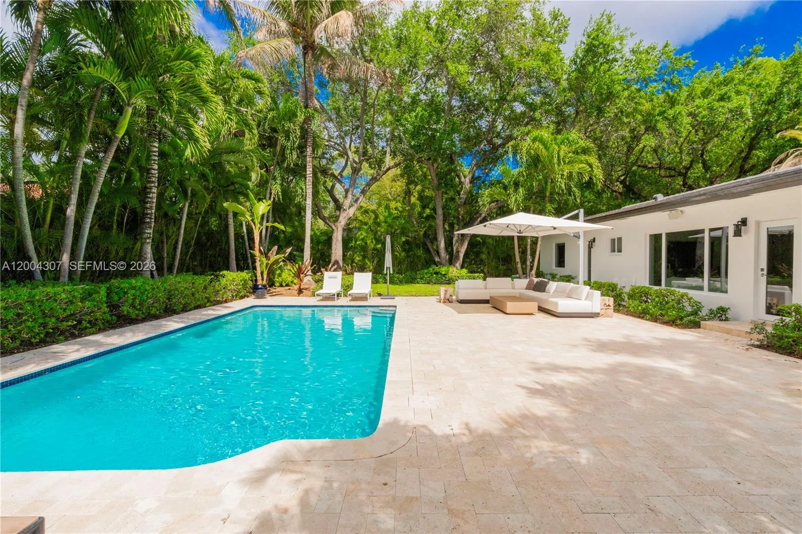 Available for 6 month lease. Immaculate and fully furnished, this beautifully remodeled 3-bedroom + office, 2-bath residence sits on a picturesque tree-lined street in Coral Gables. Approximately 1,900 sqft, including office. Thoughtfully redesigned from top to bottom, the home is filled with natural light and features a functional open concept living space. The fully renovated kitchen and bathrooms showcase high-end finishes. Set on an expansive 11,550 SF lot, the outdoor space is exceptional, featuring mature oak trees and a sparkling pool, perfect for relaxing or entertaining. Additional highlights include hurricane impact windows and doors and a versatile office/den ideal for a home office, playroom, or guest space. A rare opportunity to lease a turnkey home in one of Coral Gables’ most desirable neighborhoods.