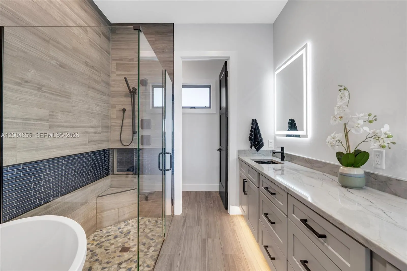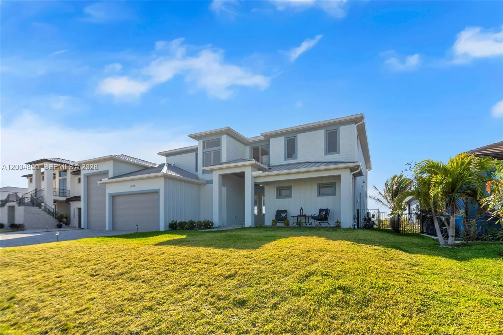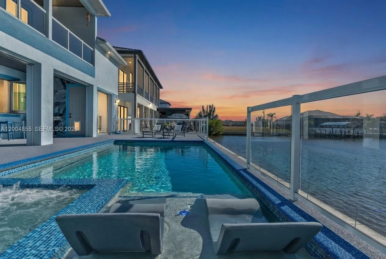 Experience modern coastal luxury in this custom-built 2025 waterfront home with direct sailboat access to the Gulf. Offering 3,784 square feet of beautifully crafted living space, this residence blends elegance with function.rnThe home features 3 oversized bedrooms, a private office, a theater/flex room with bar, and 4.5 bathrooms. Each bedroom includes an en-suite bath, while one guest suite offers a private washer and dryer—ideal for extended stays or multigenerational living. The chef’s kitchen impresses with a pot filler, two waterfall-edge islands with seating for eight, and a walk-in butler’s pantry with a second dishwasher—perfect for entertaining. Motion-activated kick lighting and dimmable lighting enhance ambiance throughout. Built for durability and efficiency, the home includes hurricane-impact windows and doors, Icynene insulation, a whole-home reverse osmosis system, and a Fuji septic system.rnOutdoor living features retractable and hurricane screens, mini-split systems in the garage and lanai, and a built-in bug misting system. The lanai and pool area showcase premium FloCo rubber flooring—slip-resistant, cool-to-the-touch, and highly durable.A 1,200+ square foot air-conditioned garage with 17-foot ceilings and a door opening to the lanai completes this exceptional property.