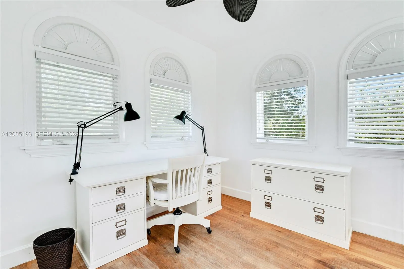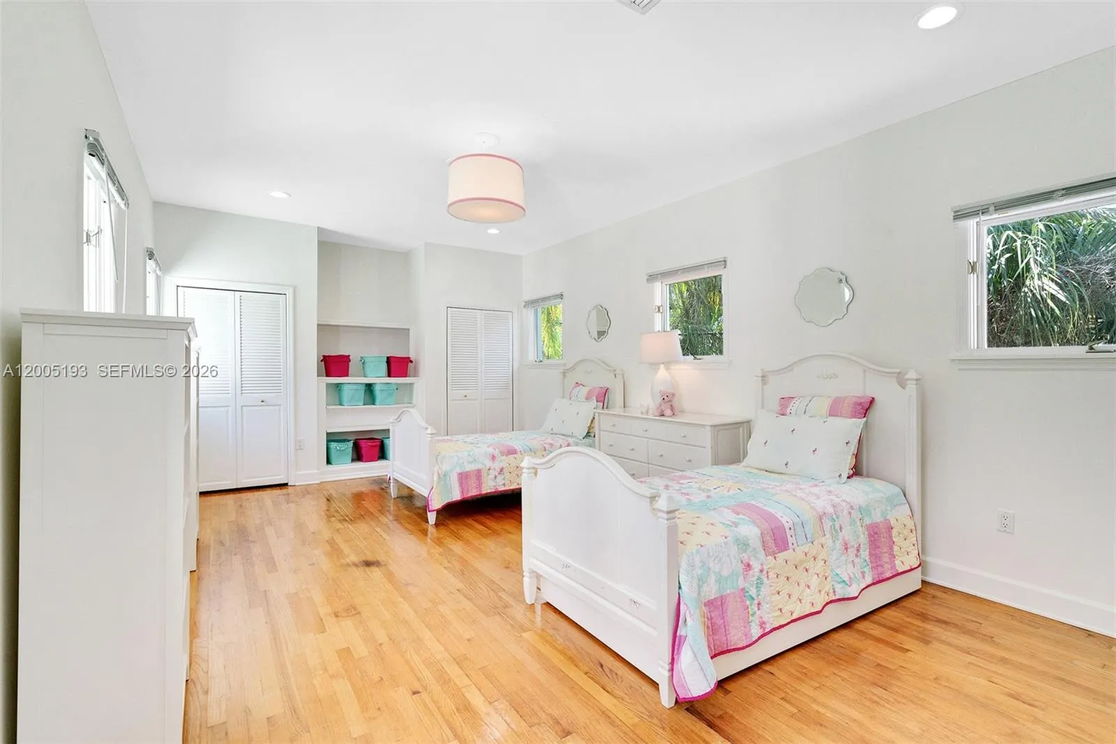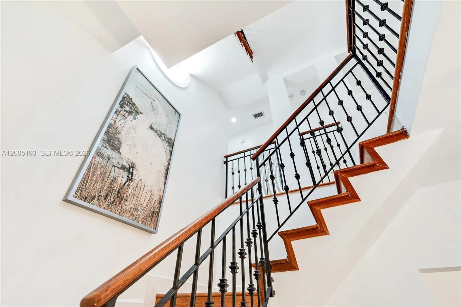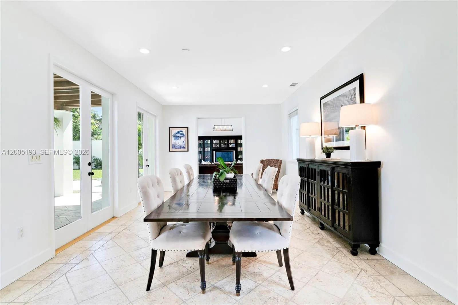 This stunning 3-story, 4-bedroom, 4-bath courtyard villa with a versatile room is located on a premier, quaint street in South Coconut Grove. Behind a walled & gated entrance, enter through exquisite Spanish cedar double doors into a perfectly designed split floor plan filled with an abundance of natural light. French doors open to a pristine lap pool & lush, private grounds with a covered outdoor space, creating seamless indoor & outdoor living. The kitchen features a gas range, with impact windows & doors throughout. The second-floor primary bedroom includes an ensuite bath. A separate private studio apartment offers a full bedroom & bathroom with its own grand exterior staircase. The third-floor tower suite is ideal for a home office or den.