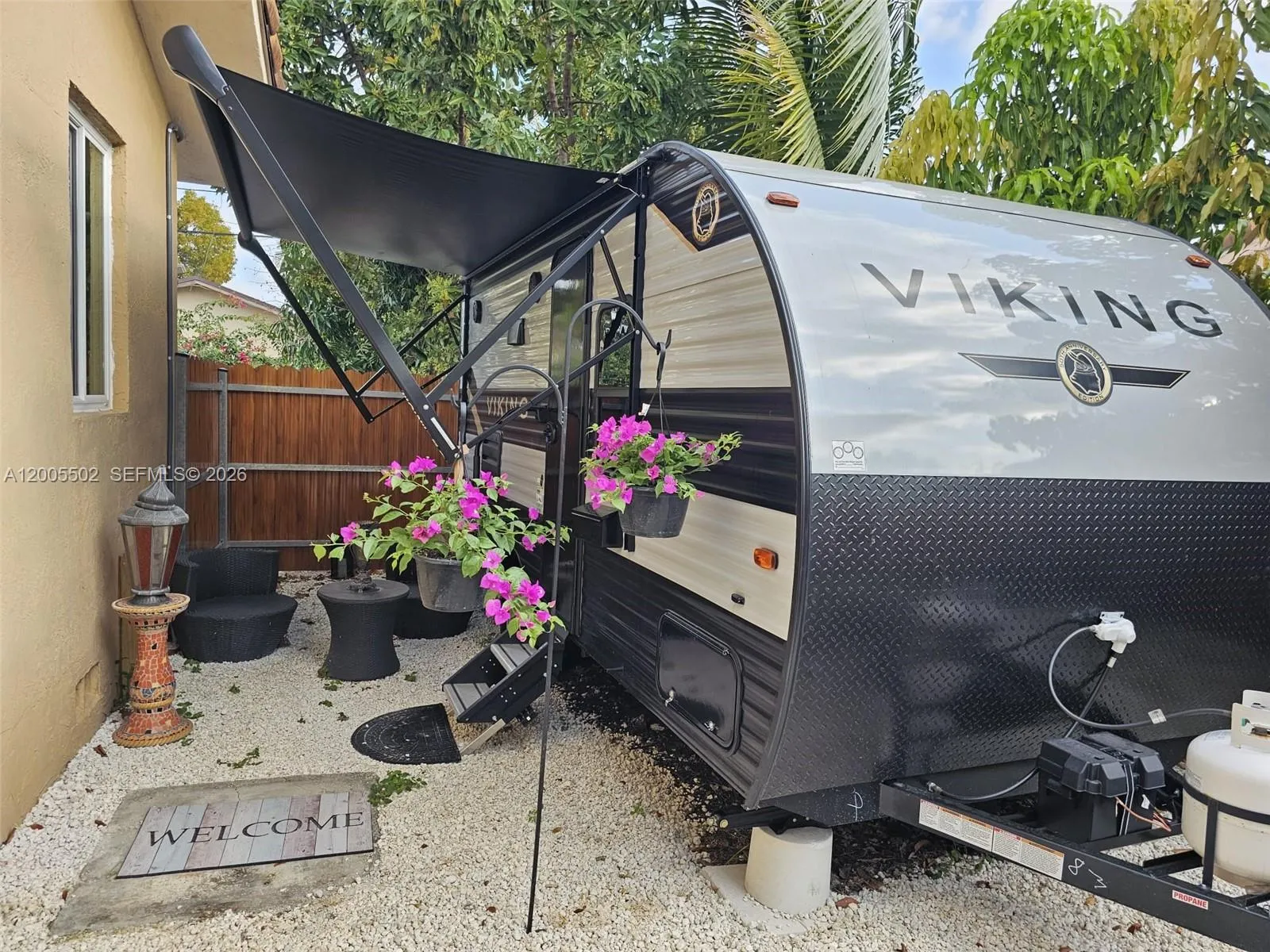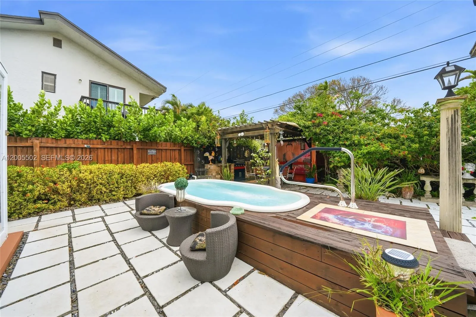 A charming single-story Old Spanish home in the heart of Miami, minutes from Coral Gables, blending timeless architecture with modern upgrades. This 3-bedroom residence features a fully remodeled kitchen, new flooring, and impact windows throughout. A standout is the expansive 720+ sq ft air-conditioned Florida Room with stunning 180° views of a lush private backyard.rnrnThe outdoor space is a true oasis with a raised pool/jacuzzi, spa area, wooden deck, gazebo with custom barbecue, and mature fruit trees (mango and avocado), perfect for entertaining. Connected to municipal sewer (no septic), a valuable upgrade.rnrnAn income-producing RV on-site is currently rented for $1,200/month, offering immediate cash flow or flexible use. Located just 11 minutes from Nu Miami Stadium (a 2026 FIFA World Cup venue), the property has strong short-term rental potential and can accommodate 10–12 guests.rnrnPrime location near Miracle Mile, Merrick Park, UM, and just 17 minutes from Miami International Airport, with easy access to Coconut Grove, Brickell, Wynwood, and Downtown Miami.