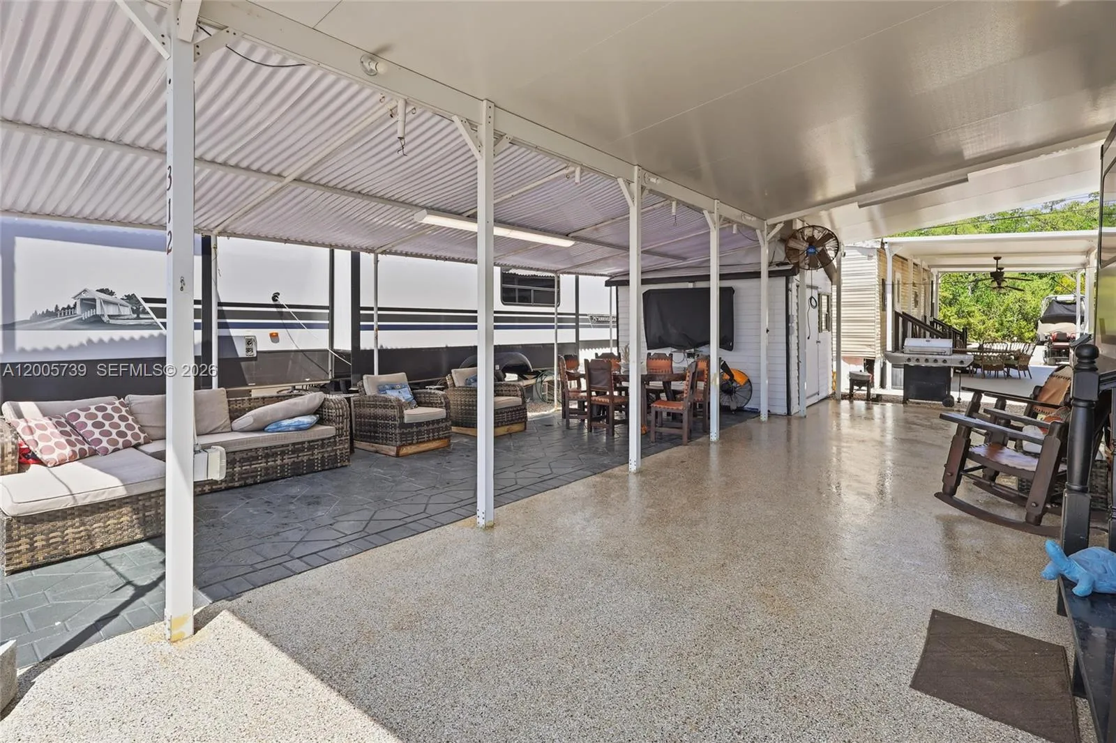 Located in the Calusa community in Key Largo, this is one of the more spacious lots in the neighborhood. Many owners are removing their RVs and building on these lots. The community is known for its unique tree canopy entrance in which every neighbor welcomes you like family. The property includes a new 2025 Sandpiper Destination RV, a large carport with an expansive terrace, and a shed with A/C perfect for storage, hobbies, additional workspace, or an extra weekend guest. It also features its own dock space with a boat lift, making it ideal for boating enthusiasts.