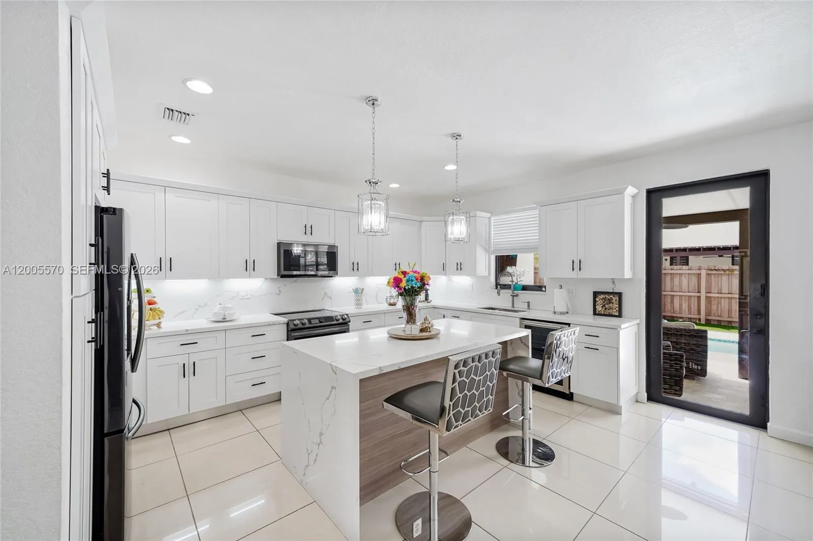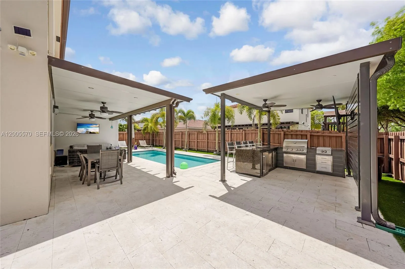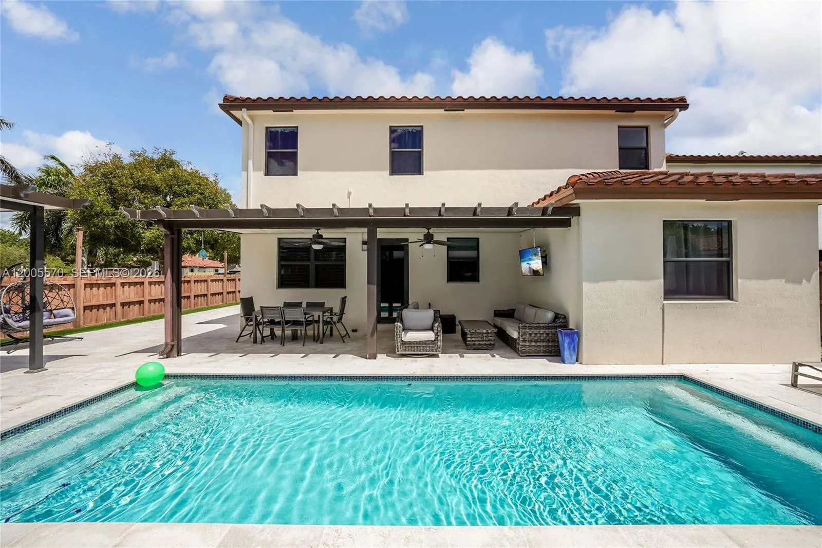 Welcome to this spacious two-story single-family home offering 4 bedrooms and 3.5 bathrooms, perfectly designed for comfort and entertaining. The home features a convenient half bath on the first floor, along with formal living and dining areas that provide the perfect setting for gatherings. A separate in-law quarters on the first floor with a separate entrance. rnrnEnjoy a large, open kitchen equipped with stainless steel appliances, a wine fridge, abundant cabinetry, and a generous breakfast island that flows seamlessly into the expansive family room. Ceramic tile and laminate wood flooring run throughout, adding both style and durability.rnrnStep outside to your private backyard oasis situated on a large corner lot. The outdoor space boasts a sparkling pool, a spacious patio with a pool deck, and a covered outdoor kitchen complete with exterior fans, ideal for year-round entertaining.rnrnUpstairs, the oversized primary suite offers a relaxing retreat with dual sinks, a Roman tub, separate shower, and his-and-hers closets. Additional highlights include a washer and dryer, ample storage, and a 2-car garage.rnrnThis home combines functionality, space, and resort-style living,ready for you to move in and enjoy.