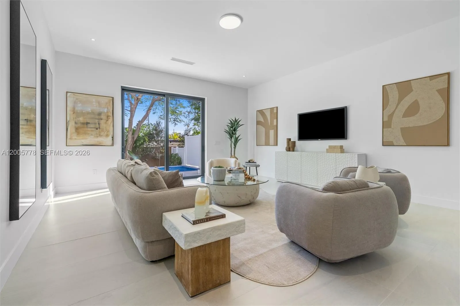 Modern new construction townhome offering luxury design. This 4-bedroom, 4.5-bath residence features 2,671 SF under A/C and a bright open floor plan with porcelain tile floors, recessed lighting, and a sleek kitchen with custom cabinetry, quartz countertops, stainless steel appliances, and a large island. Sliding glass doors lead to a private patio with a plunge pool, perfect for indoor-outdoor living.rnThe spacious primary suite includes dual sinks, two walk-in closets, and a spa-style bathroom with a soaking tub and glass-enclosed shower. Additional features include impact windows and doors, modern finishes throughout, a garage, and a laundry room with a utility sink.rnA contemporary Miami retreat designed for both comfort and style.