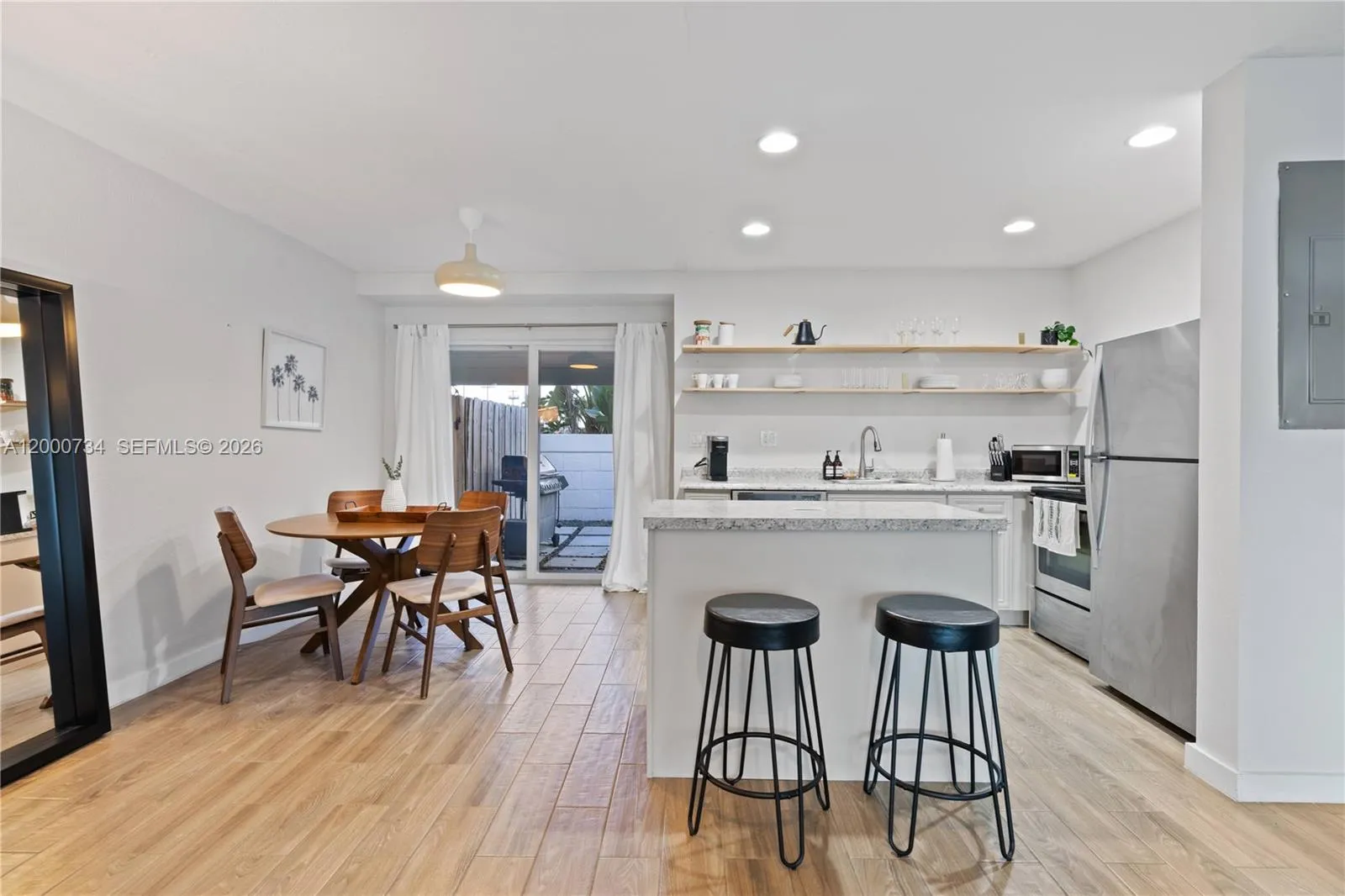 Step into this beautifully furnished 1 bed, 1 bath apartment featuring sleek tile floors, stainless steel appliances, upgraded cabinetry, and recessed lighting. The spacious bedroom offers a generous closet, while the bright and airy layout creates a cozy yet modern feel. Enjoy the convenience of an in-unit washer and dryer located on the private patio. Centrally located just 10 minutes from Las Olas and the airport, this turnkey rental is available for short- or long-term leases. Comes with 2 parking spaces and rapid approval process.
