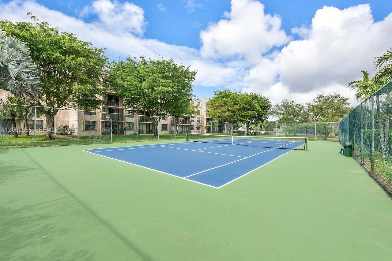 Bright and spacious top-floor corner 2-bedroom, 2-bathroom apartment featuring views of the pool and tennis courts. Located in a well-maintained building with landscaped green spaces. Community amenities include laundry facilities on every floor, elevator access, tennis courts, swimming pool, picnic area, and guest parking. Conveniently situated within a few blocks of shopping, dining, and public transportation, including Publix and The Falls.Great opportunity for ownership or investment. Contact listing agent to schedule a private showing.
