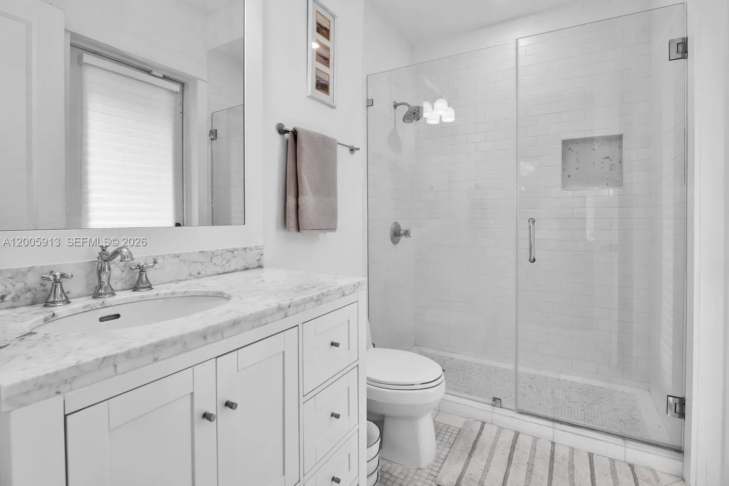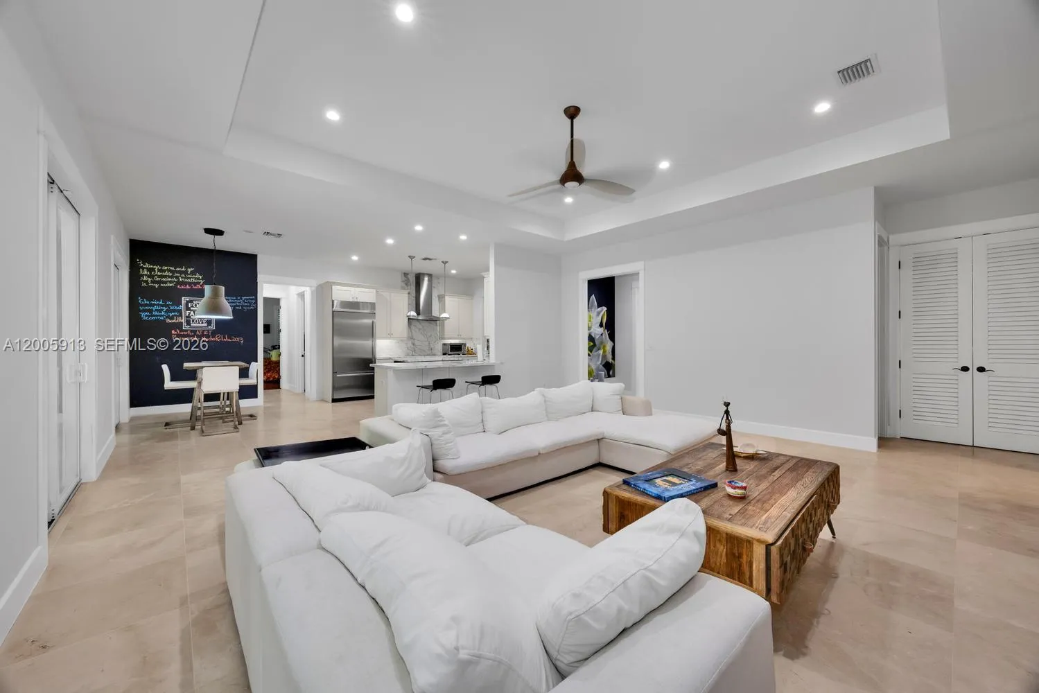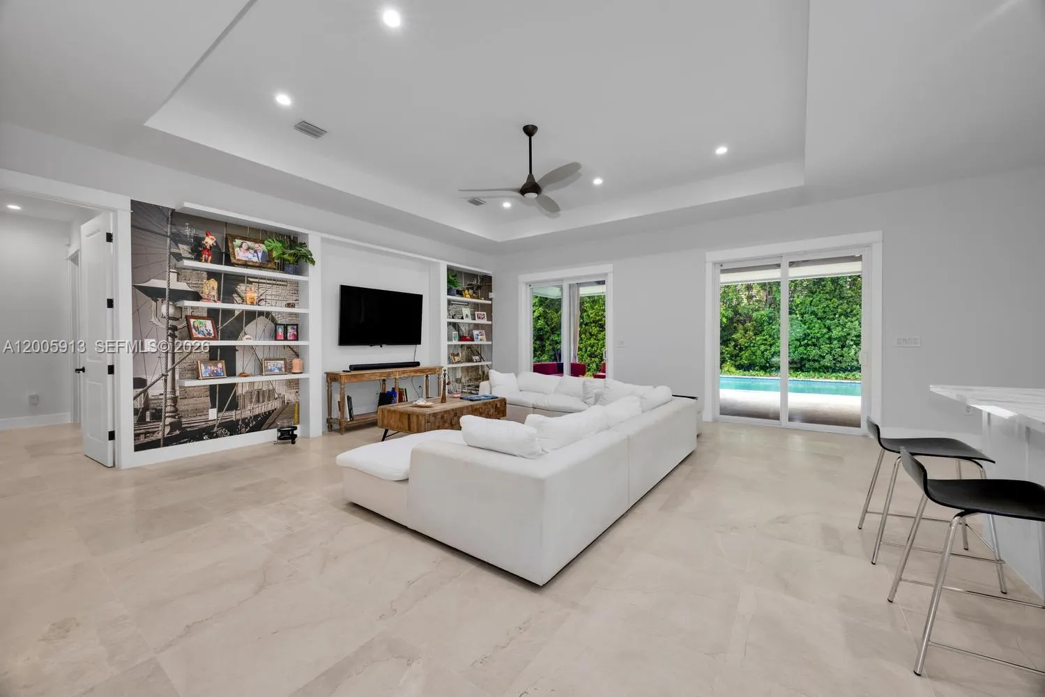 Inviting one story residence, located in a sought after South Miami residential neighborhood, offering 4 bedrooms & 3.5 bathrooms on a 12,000 sqft lot. A circular driveway leads to a light filled interior with 12 foot vaulted ceilings, marble floors in the main living areas, & wood floors in the bedrooms. The layout includes a spacious primary suite with dual sinks & a soaking tub, two bedrooms sharing a dual sink bath, plus a guest bedroom with a full bath that also serves as a cabana bath, & a conveniently placed powder room. The marble kitchen with a butlers pantry & wine refrigerator opens to the formal dining area & a comfortable family room. Outdoor living area with a large pool, ideal for entertaining. Additional features: impact windows, metal roof, laundry room, two car garage.