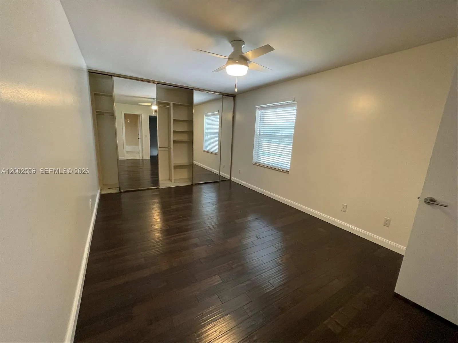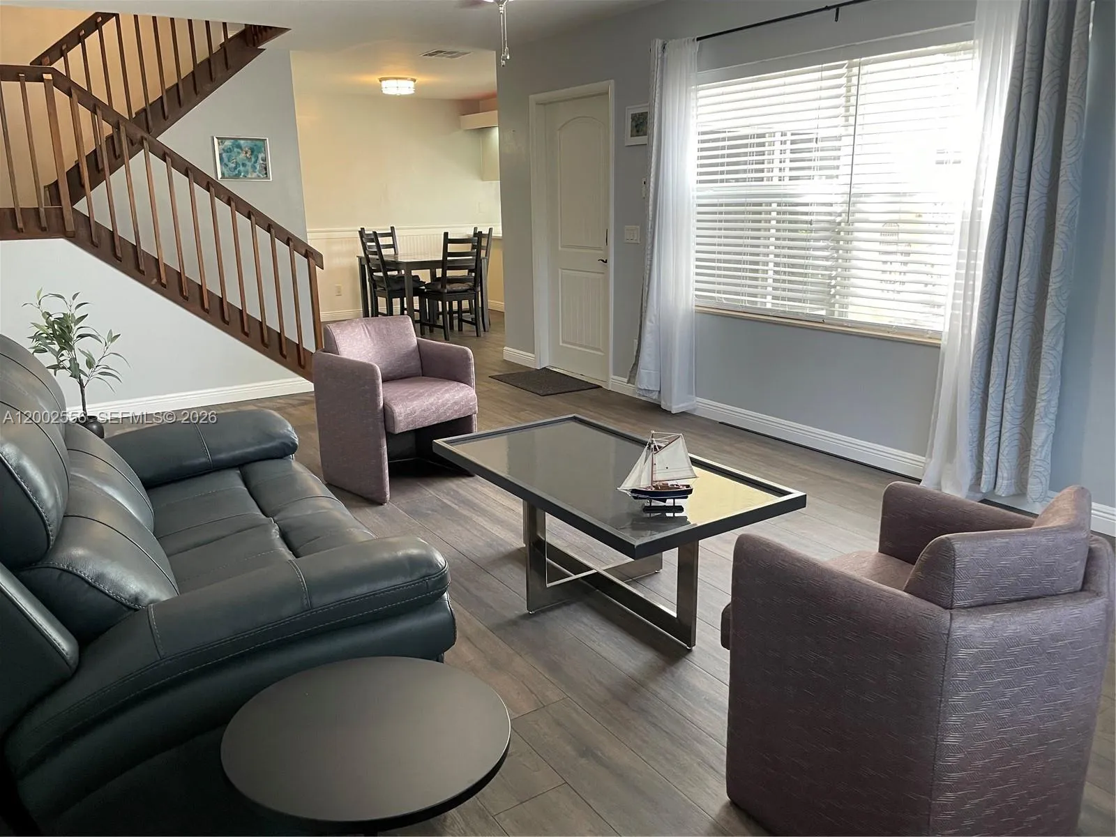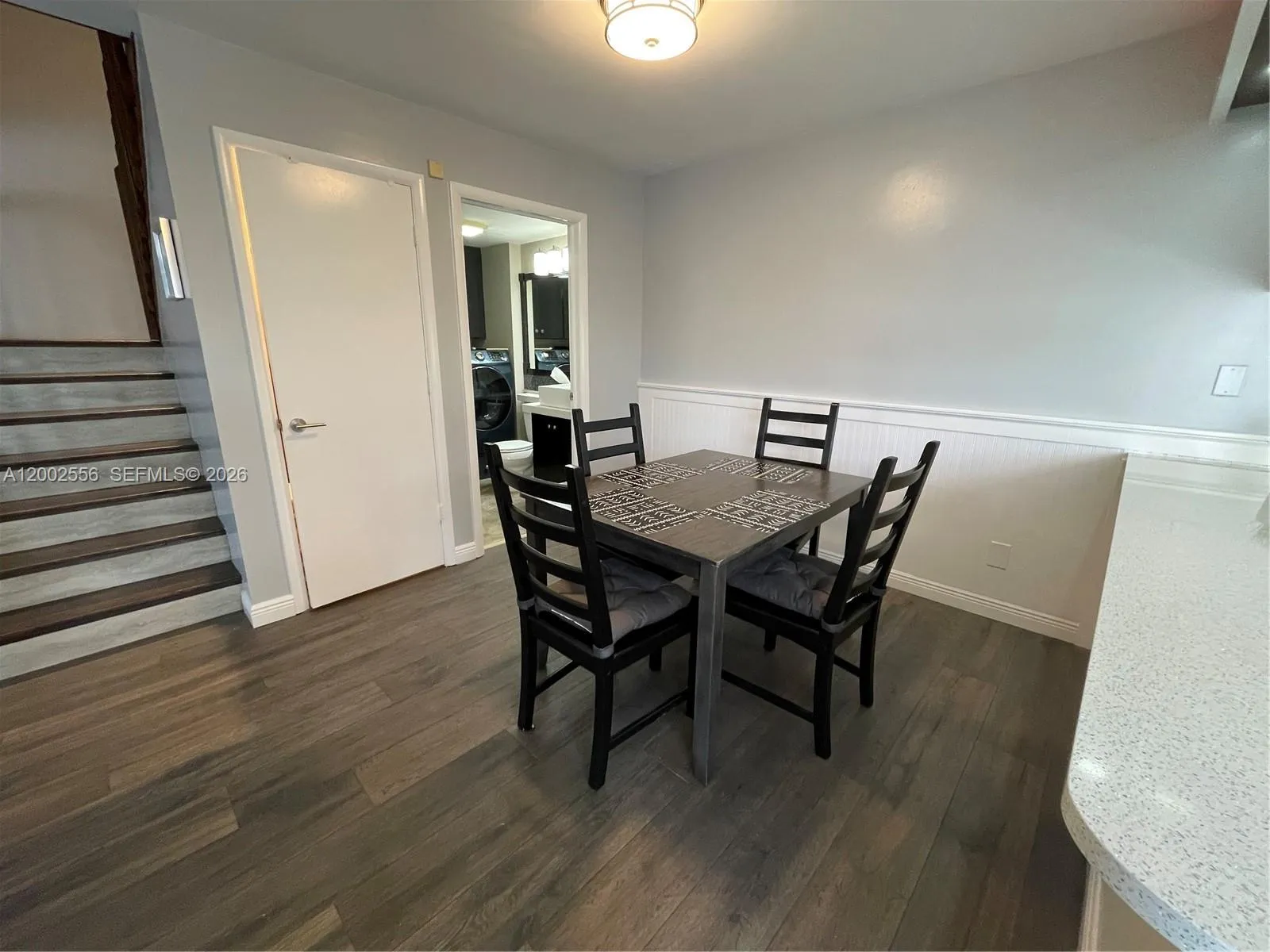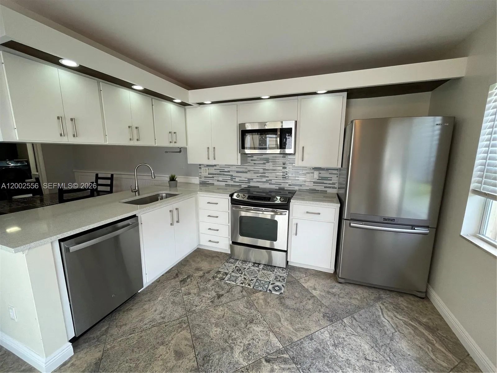 Updated 2-bedroom, 2.5-bath fee simple townhome perfect for FHA/VA buyers. Two-story layout with vinyl and travertine flooring downstairs, hardwood upstairs. Kitchen with quartz counters, stainless appliances and white cabinetry. Primary suite upstairs with walk-in closet, mirrored sliding doors and private bath featuring curbless walk-in shower, rainfall showerhead, floor-to-ceiling tile and vessel sink. Second bedroom upstairs with closet organizers and full bath with tub-shower and custom tile. Half bath on first floor. Laundry room with washer-dryer and built-in storage. Screened patio with storage shed overlooking canal and park. Hurricane impact windows and doors. AC 2016, tankless water heater. Two parking spaces.