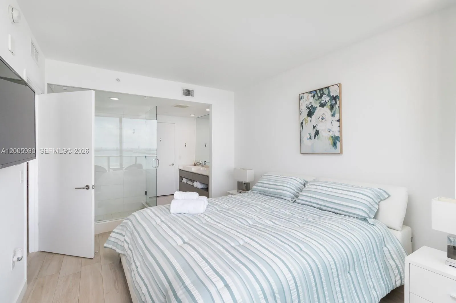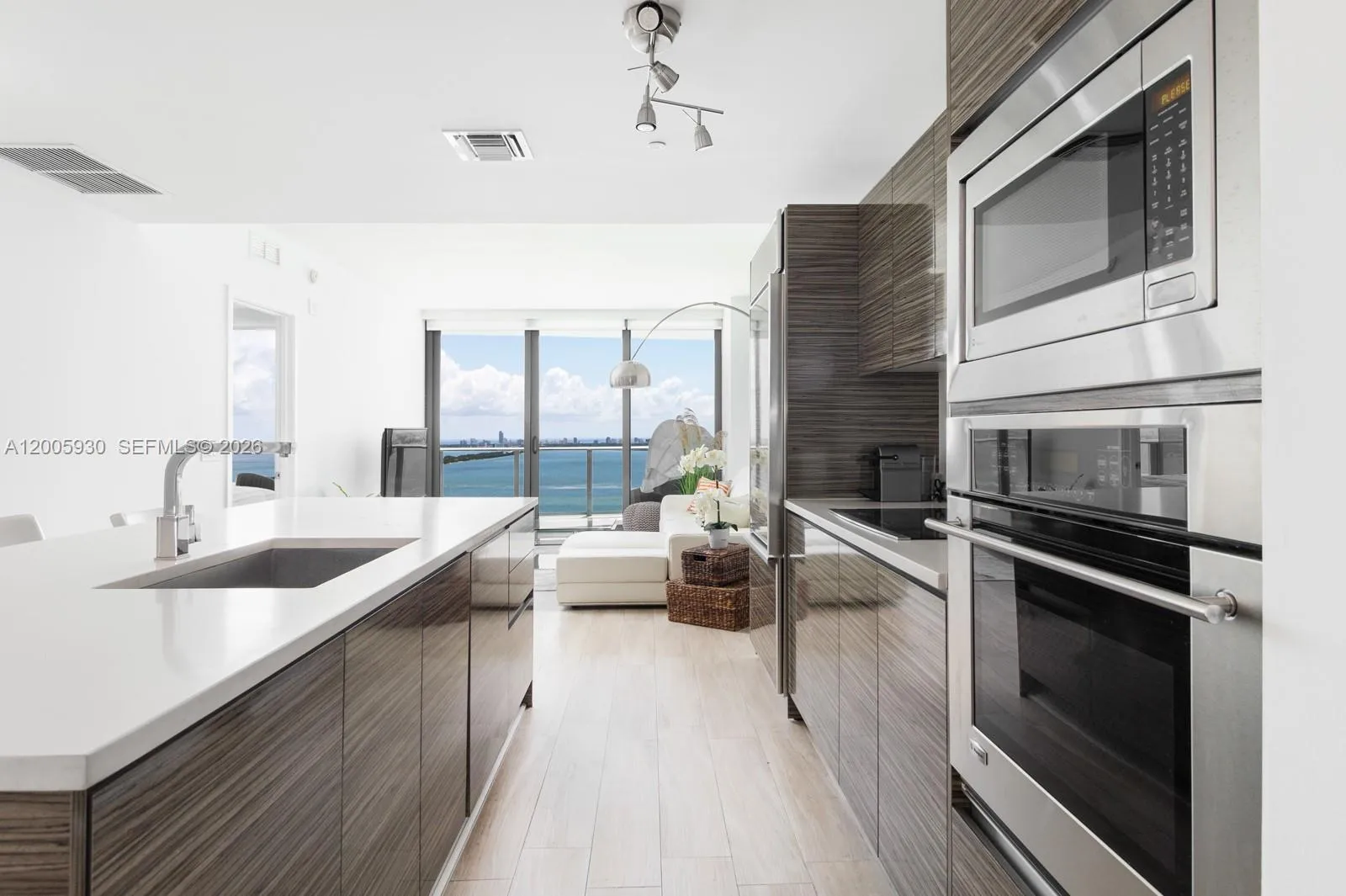 Enjoy breathtaking bay and ocean views from this stylish 2BD/2BA condo at Icon Bay. With 1,143 sq ft of living space, this modern residence offers the perfect blend of style and comfort. Private elevator foyer, floor-to-ceiling windows, porcelain floors and brand-new AC unit, washer, dryer, microwave, and electric blackout shades complement the space. The spacious balcony brings the serene waterfront right to you. Resort-style amenities include a bayfront infinity pool, tennis courts, spa, gym, and dog park, offering all that you need for a relaxing and convenient lifestyle. Includes 1 parking space assigned, plus valet. Just a 5-10 minutes drive Wynwood, Design District, Brickell, and South Beach. Fully furnished, fully equipped and available immediately.rnImportant: The balcony will remain inaccessible until December 2026 per HOA, due to stucco work being done in the building. In consideration of this temporary limitation, the unit is being offered at a discounted rate of $4,500/month. Once the balcony reopens, the monthly rent will revert to the regular rate of $5,000.