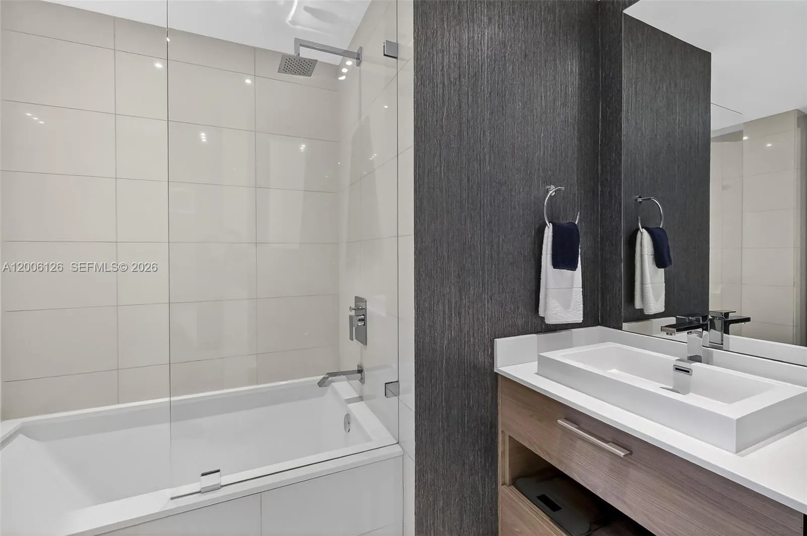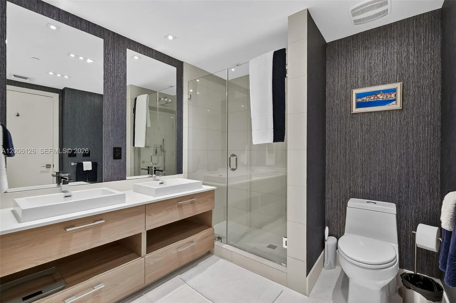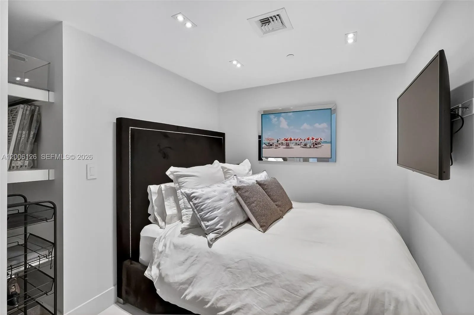 Live at the extraordinary SLS Brickell! This gorgeous 1-bed, 2-bath + den is one of the largest 1-bed floor plans in the building. Facing east, this residence offers stunning panoramic bay & city views. The spacious balcony is perfect for relaxing or entertaining. Features include designer finishes, custom lighting washer/dryer, and shelving while the open kitchen has stainless steel appliances, plenty of cabinets, and quartz countertops. The den is great for flexible use and is already set up with a queen bed, TV and shelving. Great closets, window shades + blackouts in bedroom and the large porcelain tile floors complete the space. Enjoy 5-star amenities: a rooftop pool, full-service spa, state-of-the-art fitness center, clubroom, ballroom, kid’s room, two pools, 24-hour concierge and security & top restaurants right downstairs. The perfect Brickell location close access to highway without all the center Brickell traffic, stroll to tons of cafes, dining, shopping, Brickell City Center & nightlife. The perfect blend of luxury and comfort. Easy to show. Schedule your showing today! ?Available May 1, 2026.
