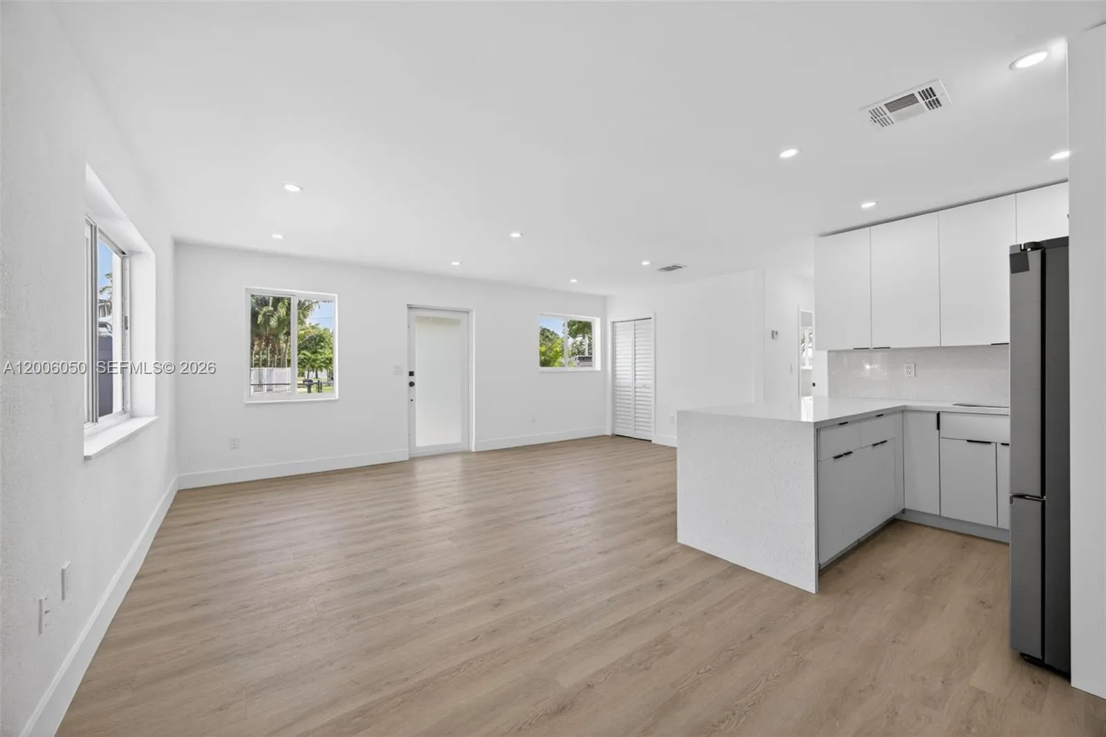 COMPLETELY UPDATED CORNER HOME with modern finishes throughout! Features a NEW A/C, ROOF IS 4 YRS OLD! And full IMPACT WINDOWS for peace of mind. The spacious front yard offers ample parking for multiple vehicles, RV, or a boat. Primary bedroom with a sleek en-suite bathroom featuring a walk-in shower. The kitchen features BRAND-NEW Samsung stainless-steel appliances. Quartz countertops. Spacious backyard with room for a pool! No rear neighbors provide added privacy, making this home a perfect blend of comfort, style, and convenience.