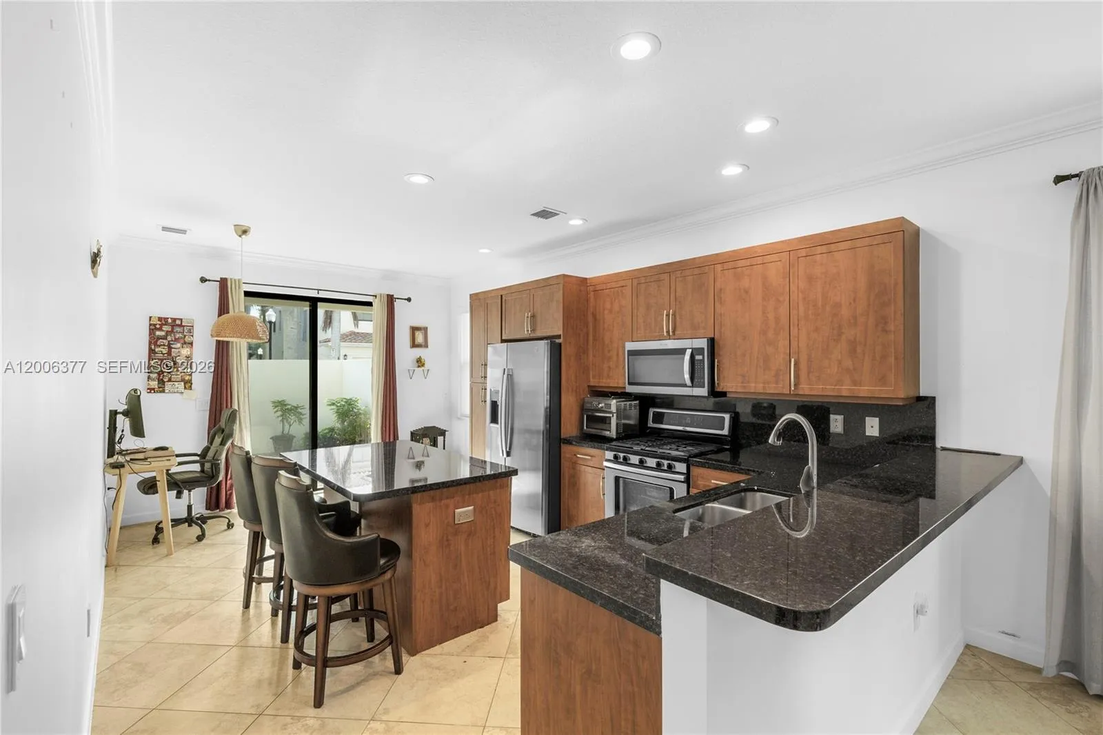 Exquisite Mediterranean-Style Residence with Private Courtyard Located at the Exclusive Artesia by Minto. With almost 2,000 sq ft of living space, this 3 Bedroom, 2.5 Bath plus 2-Car Garage is in pristine condition and features all high impact windows and doors, a kitchen to delight any chef, wood cabinets, high ceilings, decorator light fixtures, beautiful luxury vinyl floors and ceramic tile, professionally installed Tesla charger, new refrigerator, new microwave, new dishwater, AC system replaced approximately in 2023, built-in closets etc.. Artesia is a resort living community that includes 3 pools, 3 tennis, fitness center, child playground etc.. Walking distance to international shopping, restaurants, entertainment. Easy access to major highways, airports, golf etc