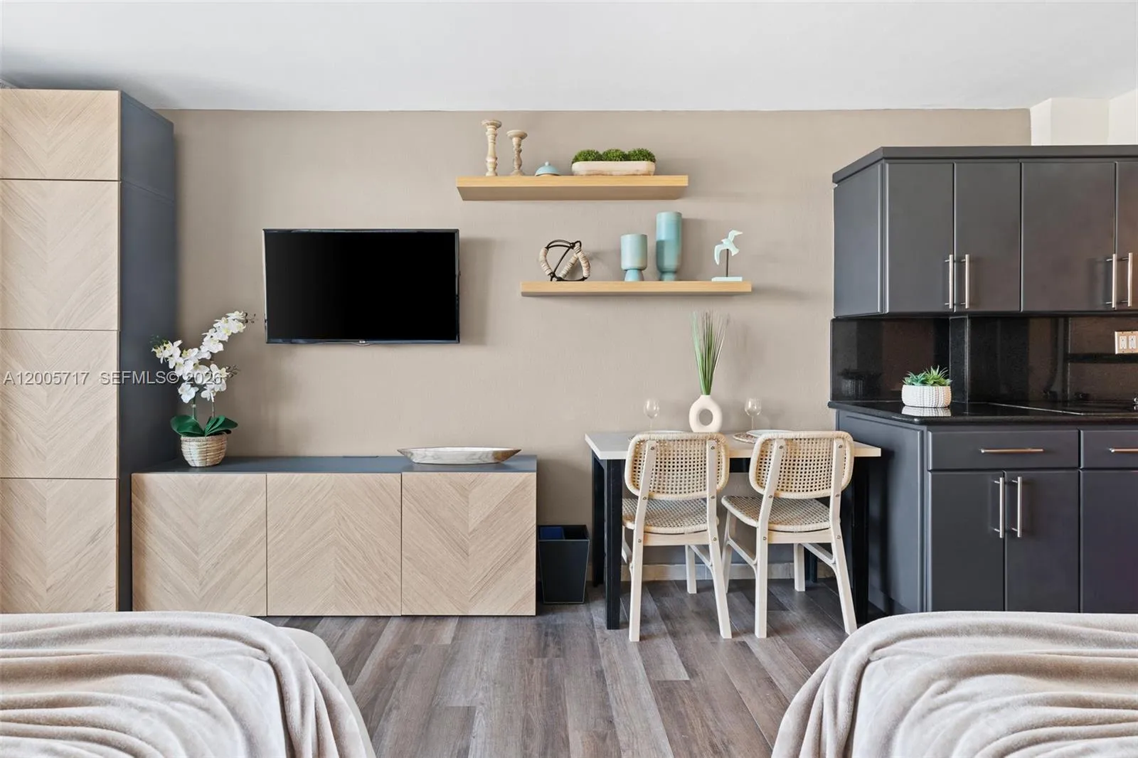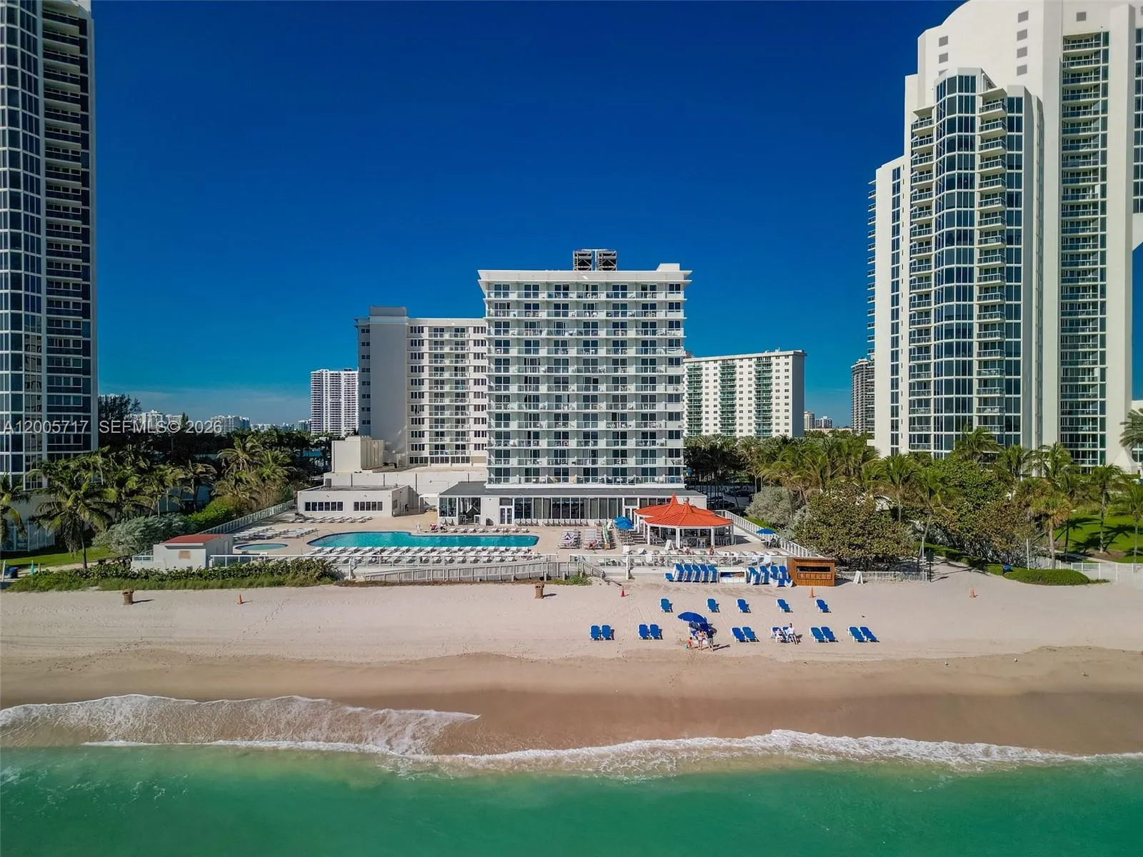 Beautiful upgraded cozy studio with a balcony and gorgeous sunset and intracoastal views. Full kitchen with granite countertops and all appliances. New custom cabinetry and a renovated bathroom. One free valet space included. Oceanfront building with beach service, pool, fitness center, restaurant, coffee bar, etc. Maintenance includes electricity, internet, building maintenance and insurance, water, trash removal etc. All assessments paid.rnUnit is in the hotel program until June 2024. Great vacation/investment property conveniently located 5 min away from Aventura mall, 10 min away from Bal Harbour, and 15 min away from FLL airport.