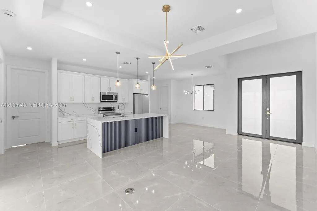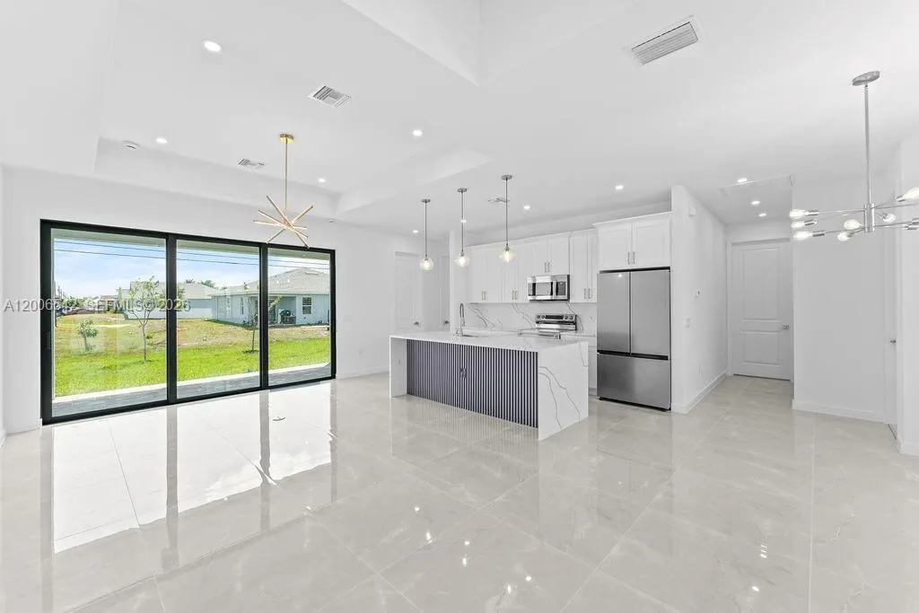 Welcome to this new construction home in NW Cape Coral, located in a quiet and growing area just minutes from shopping, restaurants, and main roads like Diplomat Pkwy and Pine Island Rd. This property features 3 bedrooms, 2 full bathrooms, plus an additional half bath designed for future pool access. With 1,532 square feet under air and 2,009 total, the layout feels open and functional, enhanced by elevated ceilings and tile flooring throughout. As you walk in, you’re welcomed by a modern kitchen finished with quartz countertops, included appliances, and a built-in wine cooler, all flowing seamlessly into the main living space. The bathrooms continue that same clean look with quartz finishes and lighted mirrors, while the closets come ready with built-out hanging systems for convenience. Outside, the home offers a paver driveway, epoxy-coated garage floors, and a backyard already prepared with space for a future pool, making it easy to create your own outdoor setup. The laundry room also includes a utility sink, adding practicality to the home’s design. This is a solid option for anyone looking for a clean, modern home in an area that continues to grow. Priced to sell, and it won’t last long. If you’d like more information or want to schedule a showing, reach out.