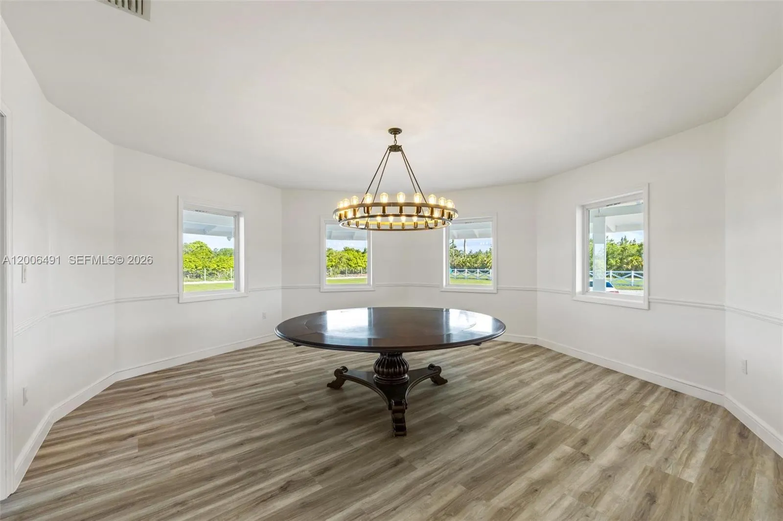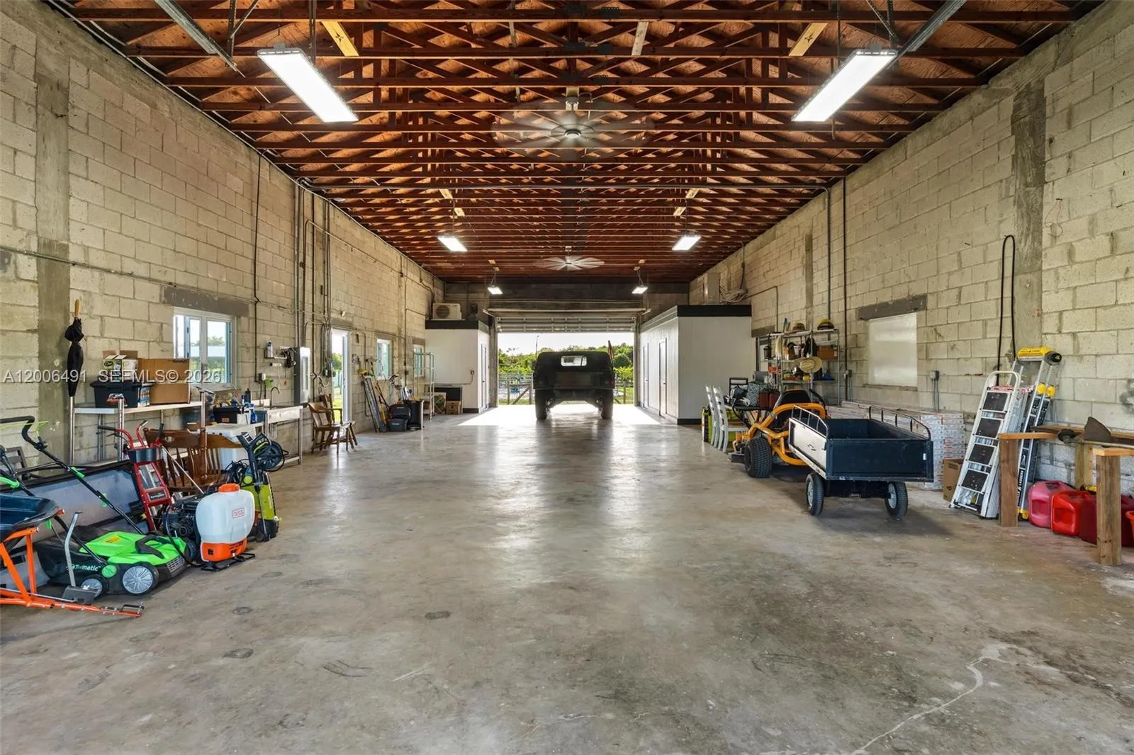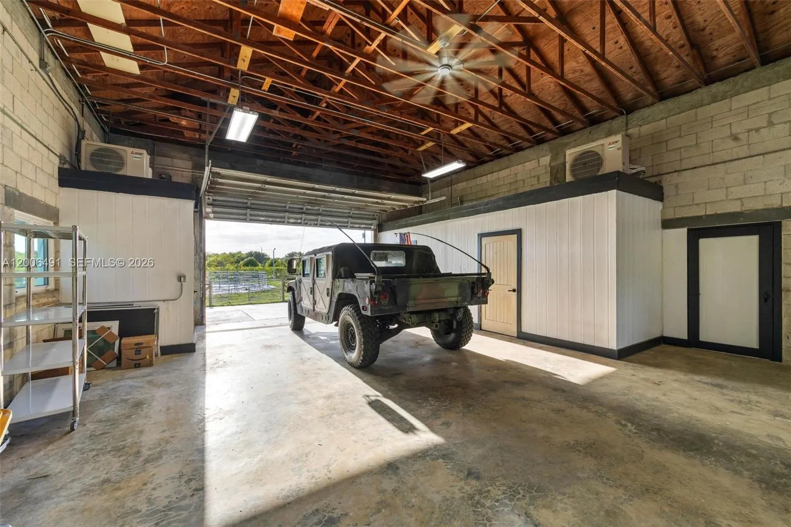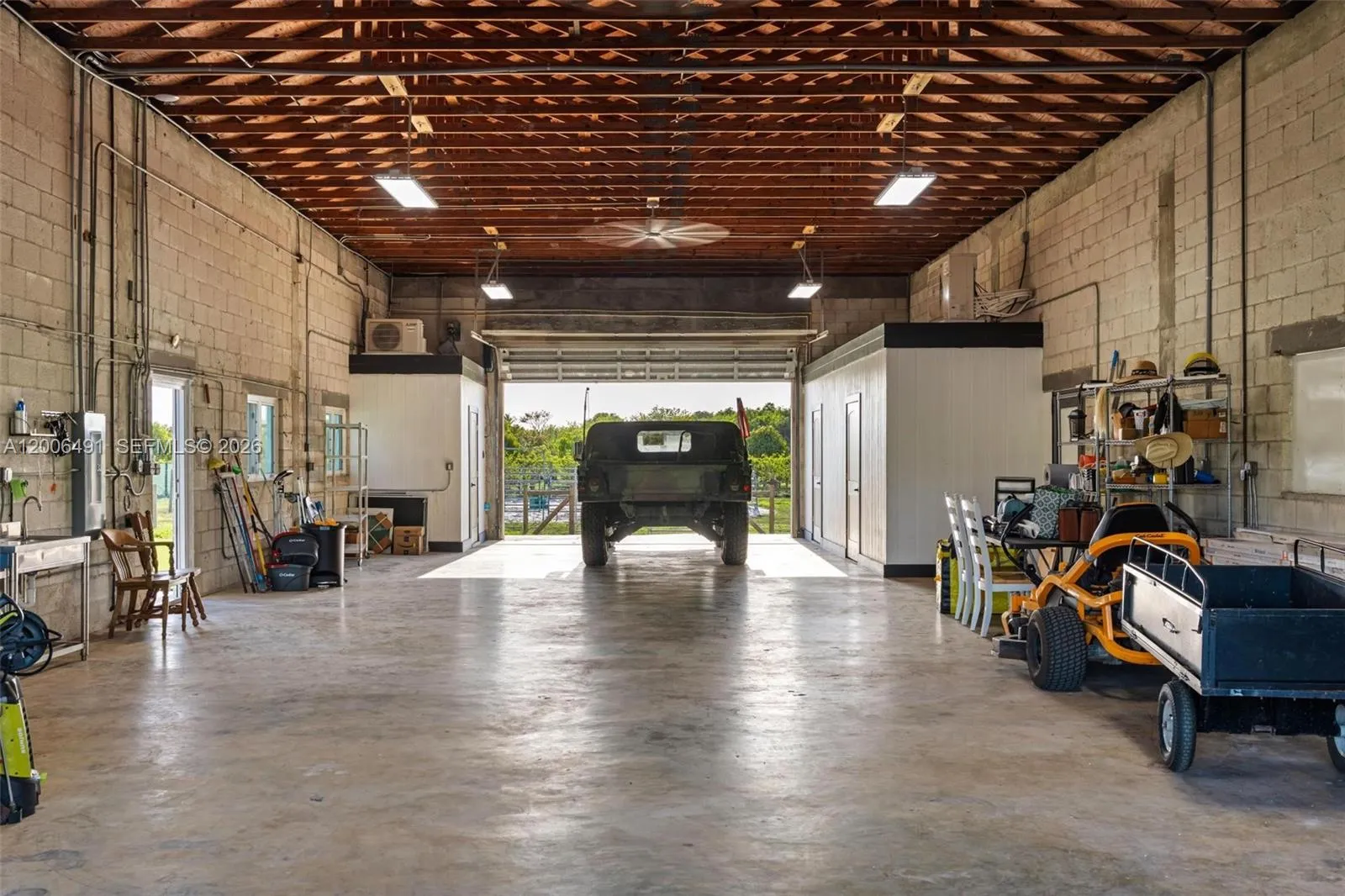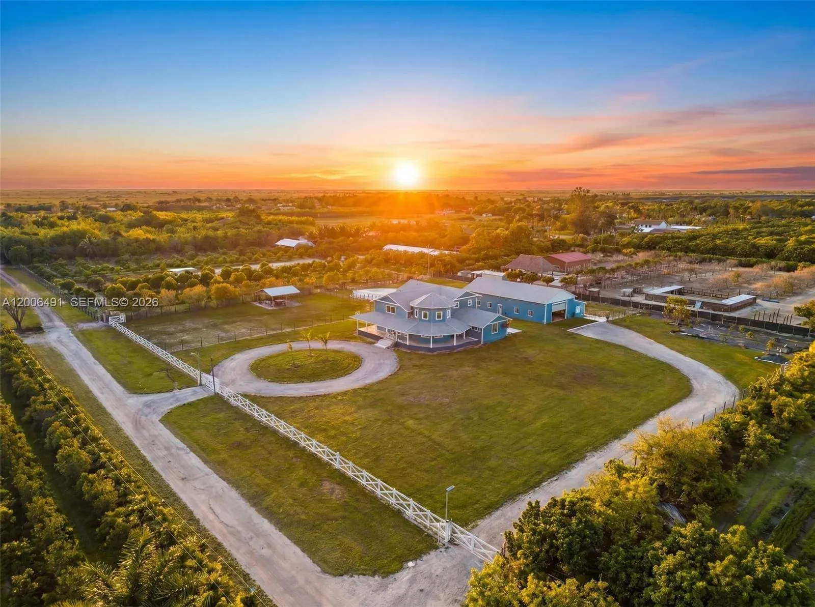 Welcome to a private equestrian retreat in the heart of the Redland, set on approximately 2.23 acres of beautifully maintained grounds. This impressive estate offers over 4,400 square feet of living space with 4 bedrooms, 3.5 bathrooms, and expansive open living areas designed for effortless entertaining. The home features impact windows and doors throughout, LifeProof flooring, fully renovated bathrooms with glass enclosures, a newly added guest half bath, an upgraded laundry room, and three new AC systems.rnrnThe property is thoughtfully designed for equestrian use and includes a fully reconstructed barn with two horse stalls, custom stall doors, a climate controlled tack room, feed and storage areas, automatic water system, lighting, and fans. Additional amenities include a round pen with sand footing, a 24×24 insulated horse shade, new horse-wire fencing, separate paddocks, and a custom wood front fence with two gates with automatic openers.rnrnThe landscaped grounds showcase a Royal Palm lined entry, leveled and usable land, concrete access areas, turf installations, and two paved driveways. A detached garage and workshop offers upgraded electrical, a full bathroom, dog wash, and multiple air-conditioned spaces. This turnkey estate delivers exceptional Redland equestrian living.