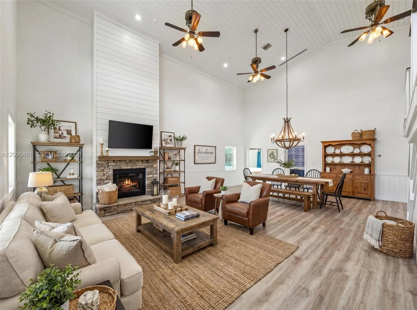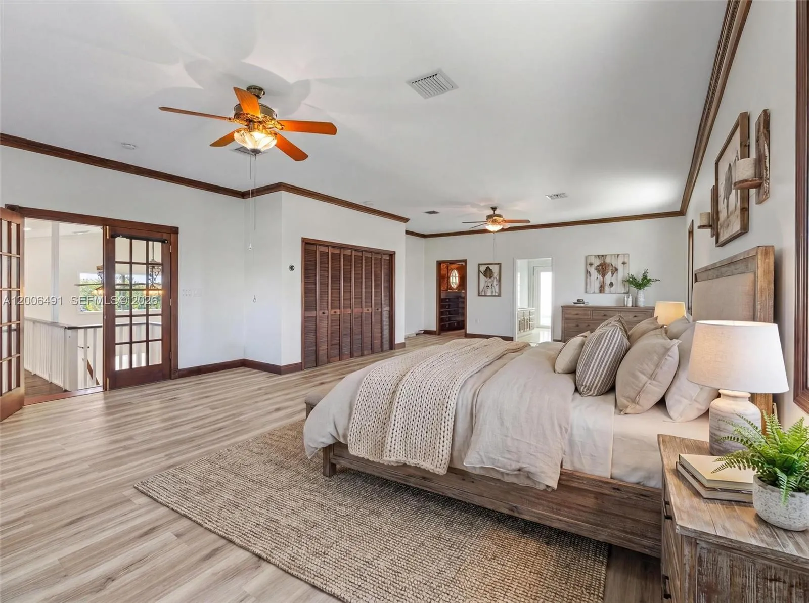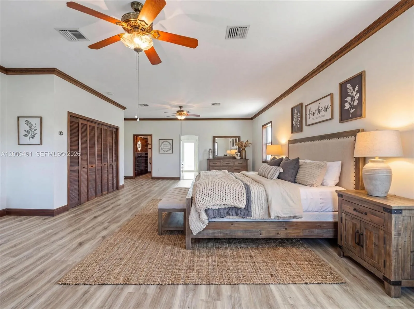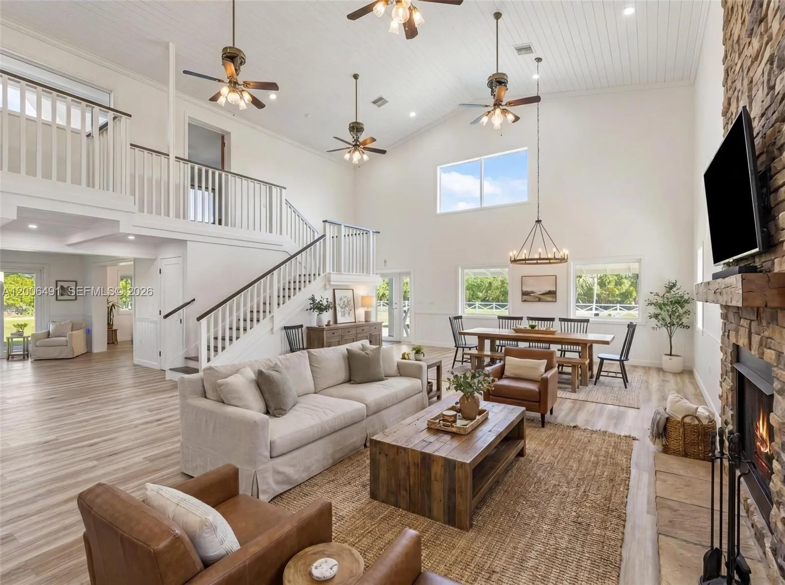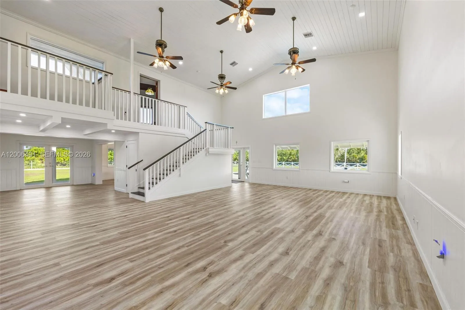 Welcome to a private equestrian retreat in the heart of the Redland, set on approximately 2.23 acres of beautifully maintained grounds. This impressive estate offers over 4,400 square feet of living space with 4 bedrooms, 3.5 bathrooms, and expansive open living areas designed for effortless entertaining. The home features impact windows and doors throughout, LifeProof flooring, fully renovated bathrooms with glass enclosures, a newly added guest half bath, an upgraded laundry room, and three new AC systems.rnrnThe property is thoughtfully designed for equestrian use and includes a fully reconstructed barn with two horse stalls, custom stall doors, a climate controlled tack room, feed and storage areas, automatic water system, lighting, and fans. Additional amenities include a round pen with sand footing, a 24×24 insulated horse shade, new horse-wire fencing, separate paddocks, and a custom wood front fence with two gates with automatic openers.rnrnThe landscaped grounds showcase a Royal Palm lined entry, leveled and usable land, concrete access areas, turf installations, and two paved driveways. A detached garage and workshop offers upgraded electrical, a full bathroom, dog wash, and multiple air-conditioned spaces. This turnkey estate delivers exceptional Redland equestrian living.