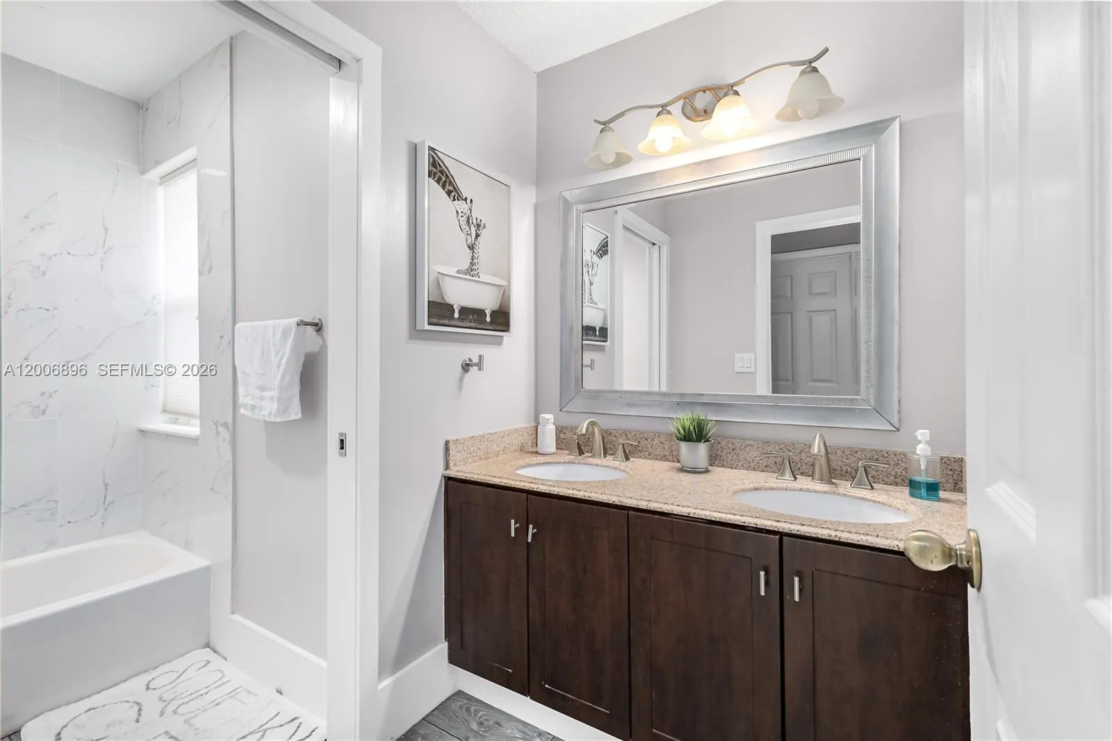 Welcome to the private Regency community in Davie, FL! Across from Southwest Ranches and zoned for A-rated schools like Hawkes Bluff Elementary, this 1997 corner lot offers 1,982 sq ft with 4 bedrooms and 2.5 bathrooms. Features include a 2-car garage, screened-in patio, and a modern kitchen with new countertops and stainless steel appliances. Enjoy tall ceilings, a spacious family room, and formal dining and living areas. The upstairs primary suite boasts a walk-in closet, dual sinks, soaking tub, and glass door shower. Three additional bedrooms share a renovated bathroom. The fenced backyard provides ample play space. Just 3 minutes to the community pool and 6 minutes to Vista View Park, this home is perfect for family fun and outdoor activities.
