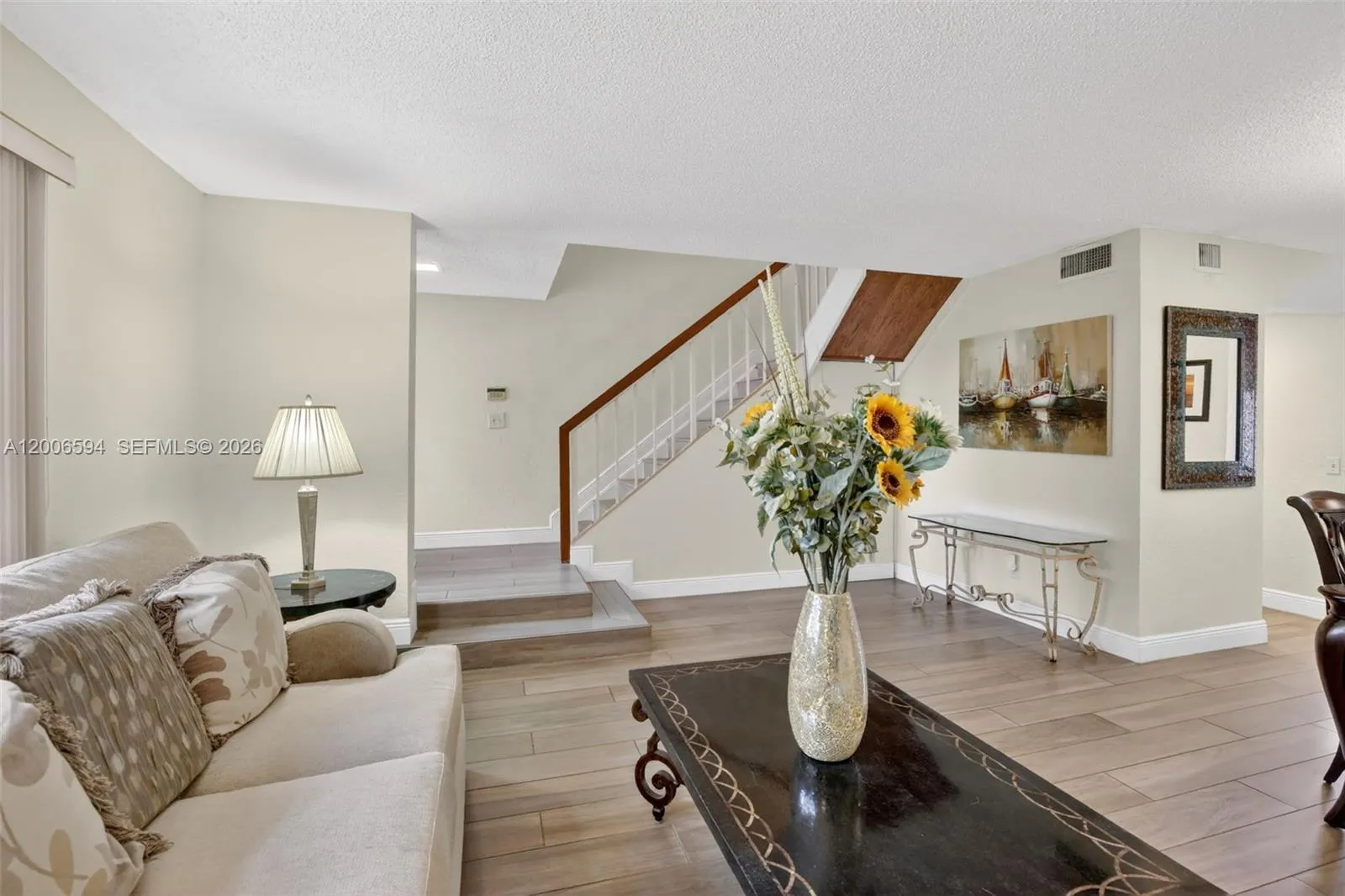 Spacious 3BR, 2.5BA two-story townhome in Villas Lakes Townhomes, perfectly positioned in the heart of Pembroke Pines. A bright, open layout creates an effortless flow, featuring porcelain plank tile on the main level and luxury vinyl upstairs, with textured walls adding warmth and character throughout. The kitchen is equipped with stainless steel appliances and opens seamlessly into the living and family areas, extending out to a screened-in patio overlooking tranquil water views—an inviting space that naturally becomes part of your everyday living. All bedrooms are tucked upstairs for added privacy, including a comfortable primary suite retreat. Low HOA includes cable and access to resort-style amenities such as pool, tennis, racquetball, security patrol, and basketball. Conveniently located near top-rated schools, shopping, dining, parks, and major highways, with easy access to South Florida’s beaches.