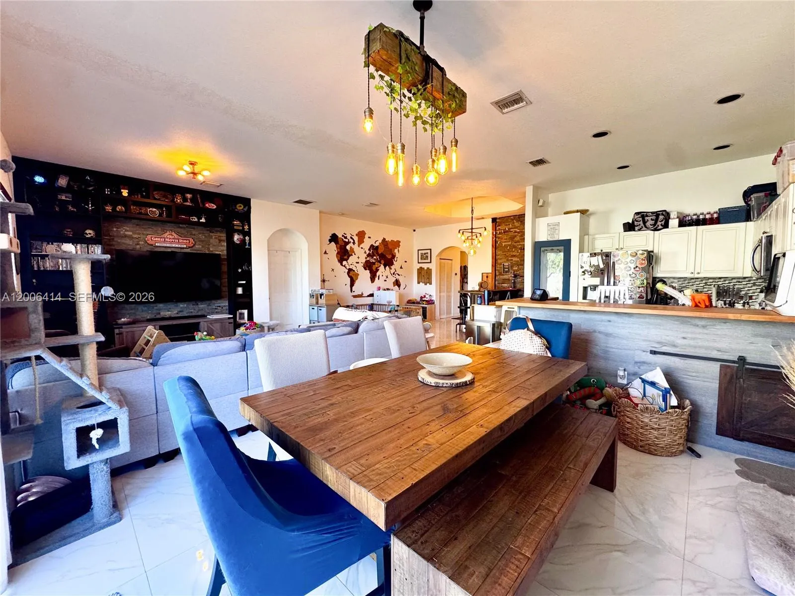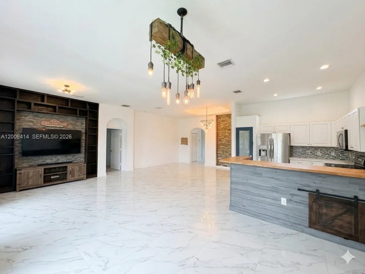 Well-maintained 3-bedroom, 2.5-bath home in Cutler Bay featuring an open living area that enhances the flow of the main spaces, making it ideal for both everyday living and entertaining. The split floor plan offers a practical layout with separation between living and bedroom areas.rnrnThe kitchen has been updated with new countertops, backsplash, newer appliances (2020), and a farmhouse-style sink. Flooring includes large porcelain tile in the living areas and gray laminate wood flooring in the bedrooms.rnRecent improvements include a new HVAC system (2025). The property is also equipped with an EV charger.rnThis home has had only two owners and has been consistently maintained. The backyard is fully fenced, providing privacy and a flexible outdoor space with room for future customization.