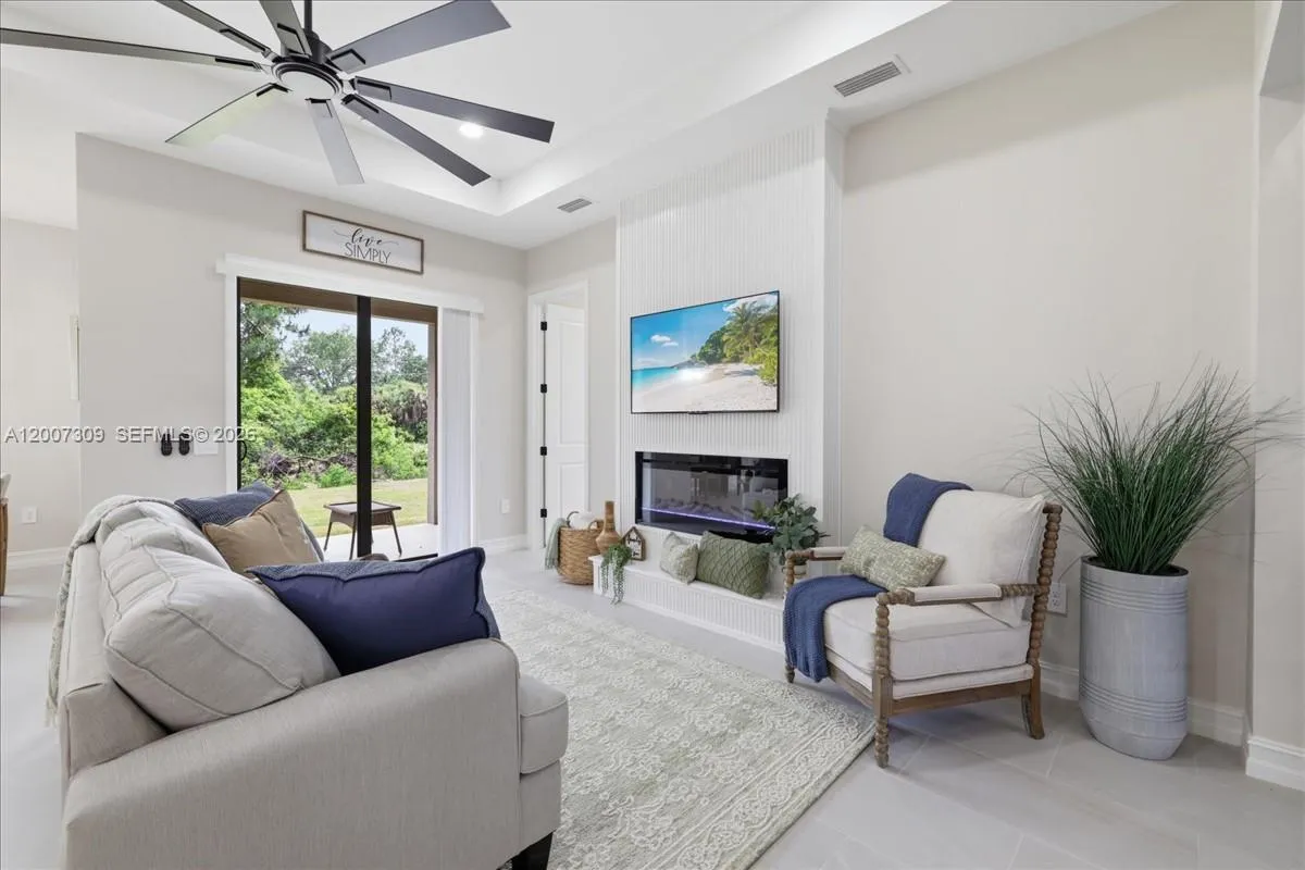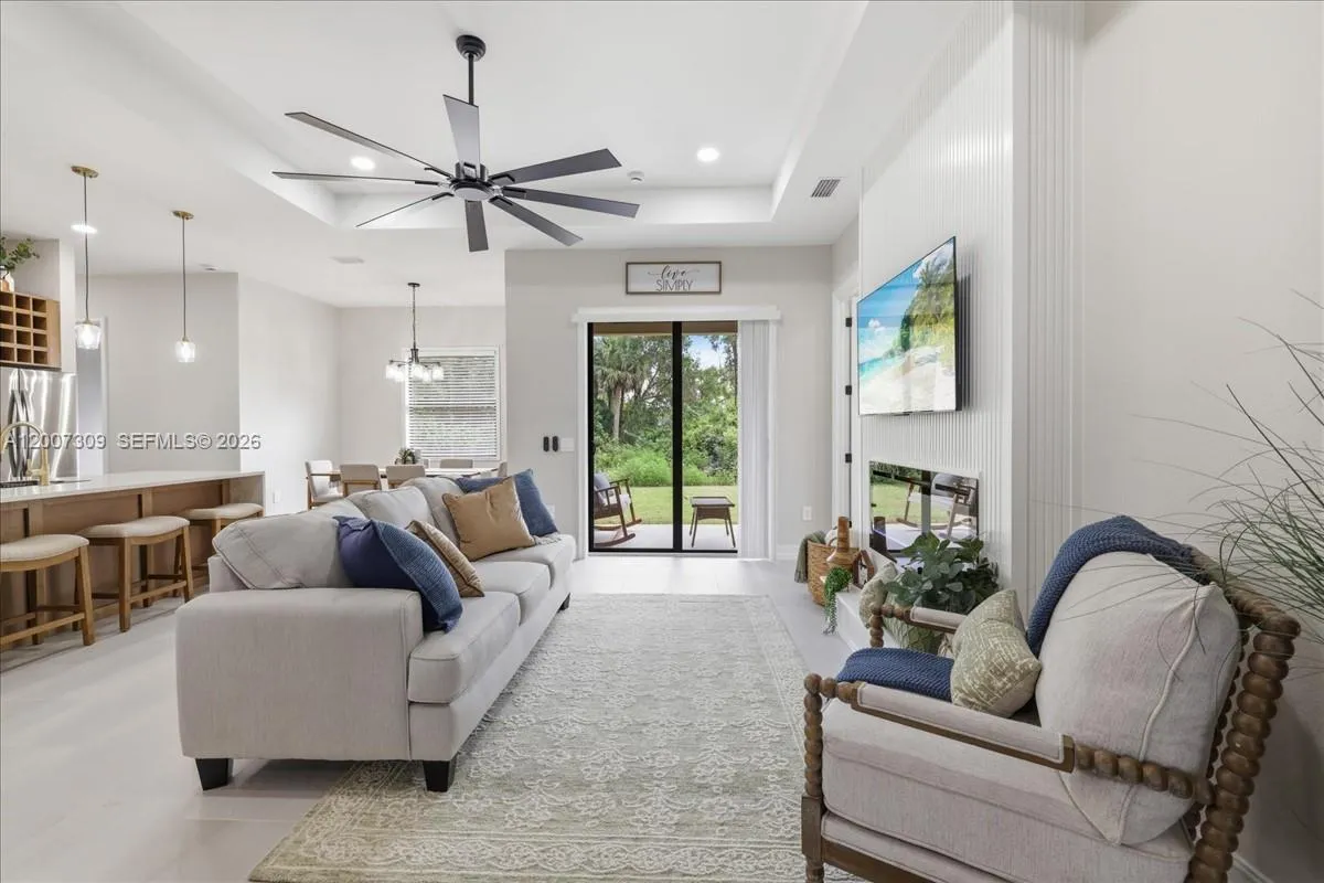 This beautifully crafted new construction home sits on an oversized lot, offering both space and privacy. Designed with quality and functionality in mind, the property features a whole-house reverse osmosis system, ensuring premium water quality throughout. The interior showcases custom cabinetry and a custom-designed range hood, complemented by a spacious kitchen island with a built-in microwave drawer for modern convenience. The primary suite includes a luxurious bathroom with a double shower head, creating a spa-like retreat. Exterior highlights include an expansive paver driveway with additional width for ample parking, a full sprinkler system, and striking stone veneer accents that enhance curb appeal. The backyard is built for entertaining, featuring a fully equipped outdoor kitchen with a gas grill. A perfect blend of thoughtful upgrades and contemporary design, this home offers comfort, style, and exceptional outdoor living.