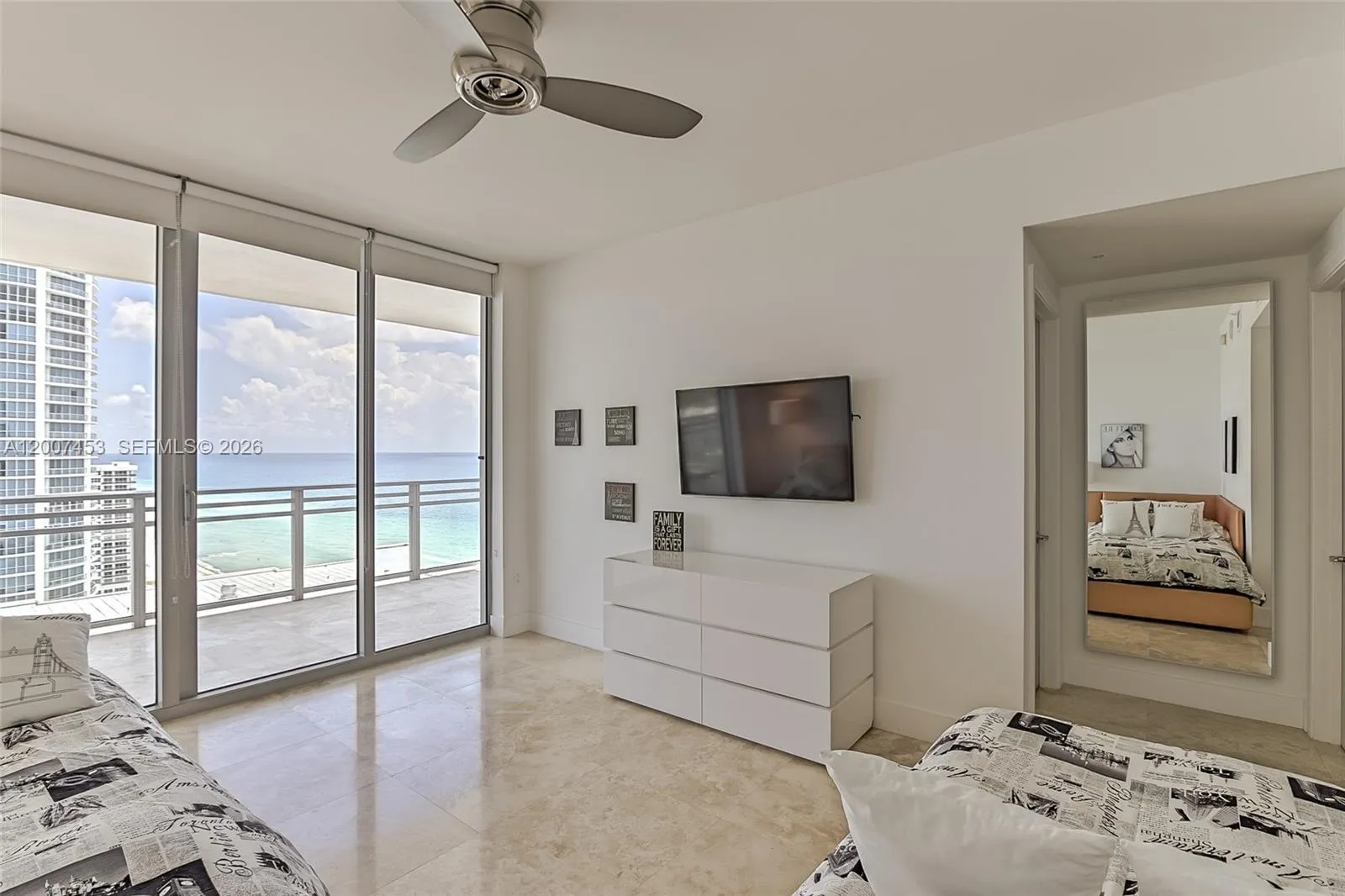 Spectacular 3-bedroom, 3.5-bathroom direct oceanfront condo in a boutique condominium with only 135 units, featuring two bedrooms with king-size beds and a third with two single beds plus two bunk beds. This spacious 3,000 sq.ft. residence includes a private elevator and lobby. Impeccably furnished with marble floors, recessed lighting, an open kitchen, custom walk-in closets, two large balconies, and a private surround-sound theater. Enjoy access to a fitness center, entertainment area, heated saline pool, and spa. Indulge in world-class services and four restaurants at the adjacent Hilton Resort. Conveniently located one block from a new Publix across Ocean Drive for groceries. Pure luxury! Diplomat Oceanfront