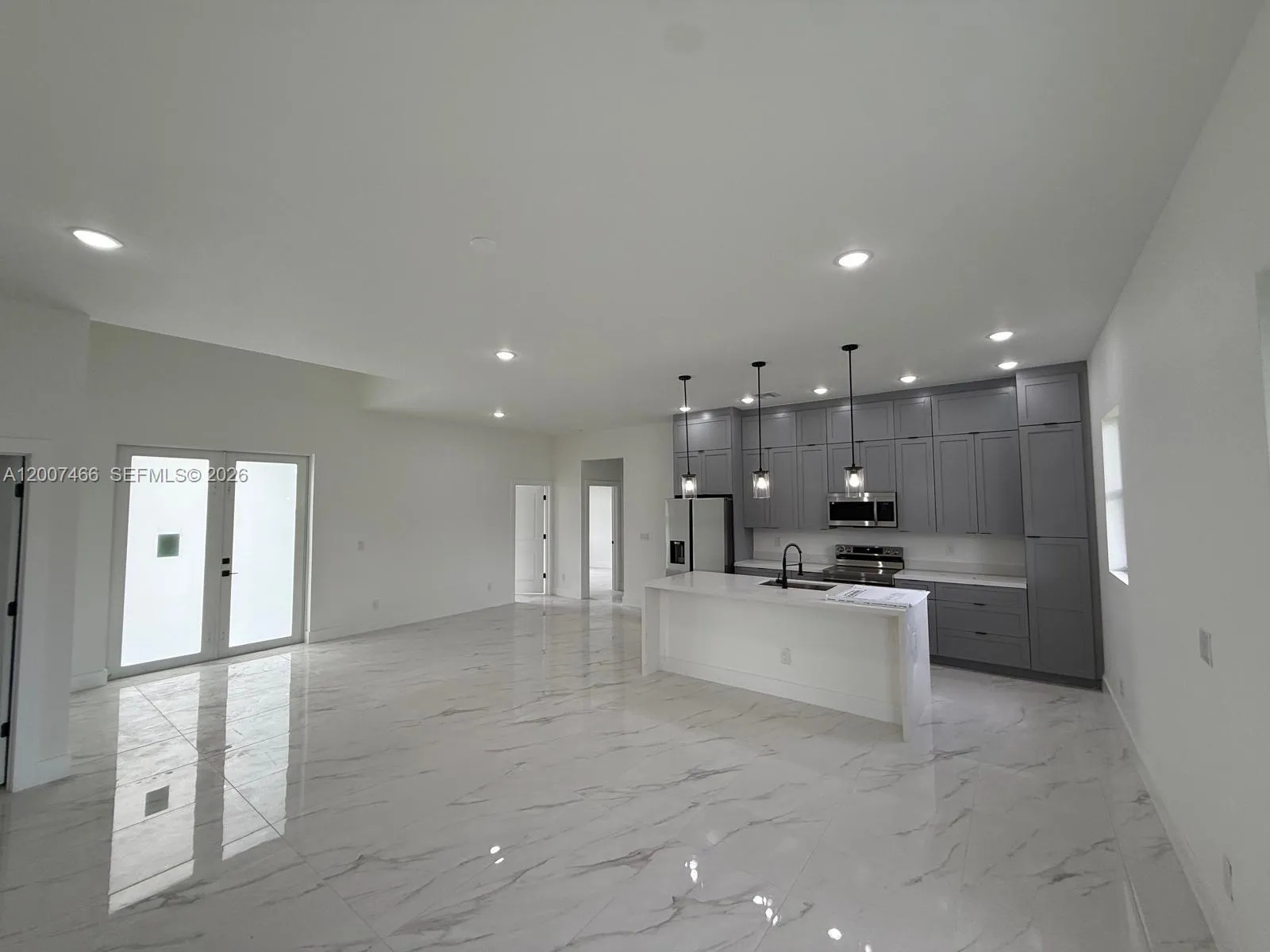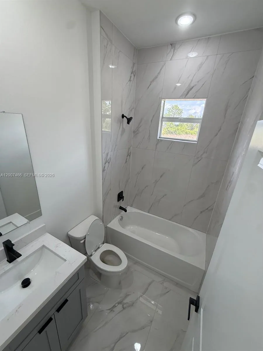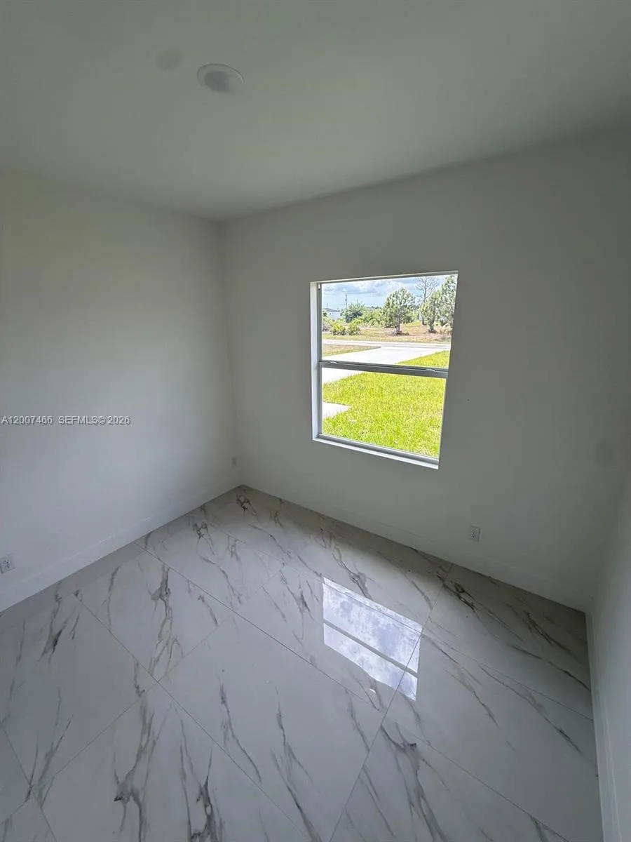 Brand New Construction in Lehigh Acres Beautiful new construction featuring 3 bedrooms + den and 2 full bathrooms, designed with a bright open-concept layout and modern finishes throughout. Enjoy porcelain tile flooring, high ceilings, and a sleek kitchen with quartz countertops, large island, stainless steel appliances, and custom cabinetry. The flexible den is perfect for a home office, guest room, or additional living space. Additional highlights include impact windows and doors, 2-car garage, and a dedicated laundry room. The primary bathroom offers a double vanity with contemporary design. Located on a spacious lot in a growing area of Lehigh Acres, this home is ideal for both end-users and investors, offering strong rental potential and long-term value.