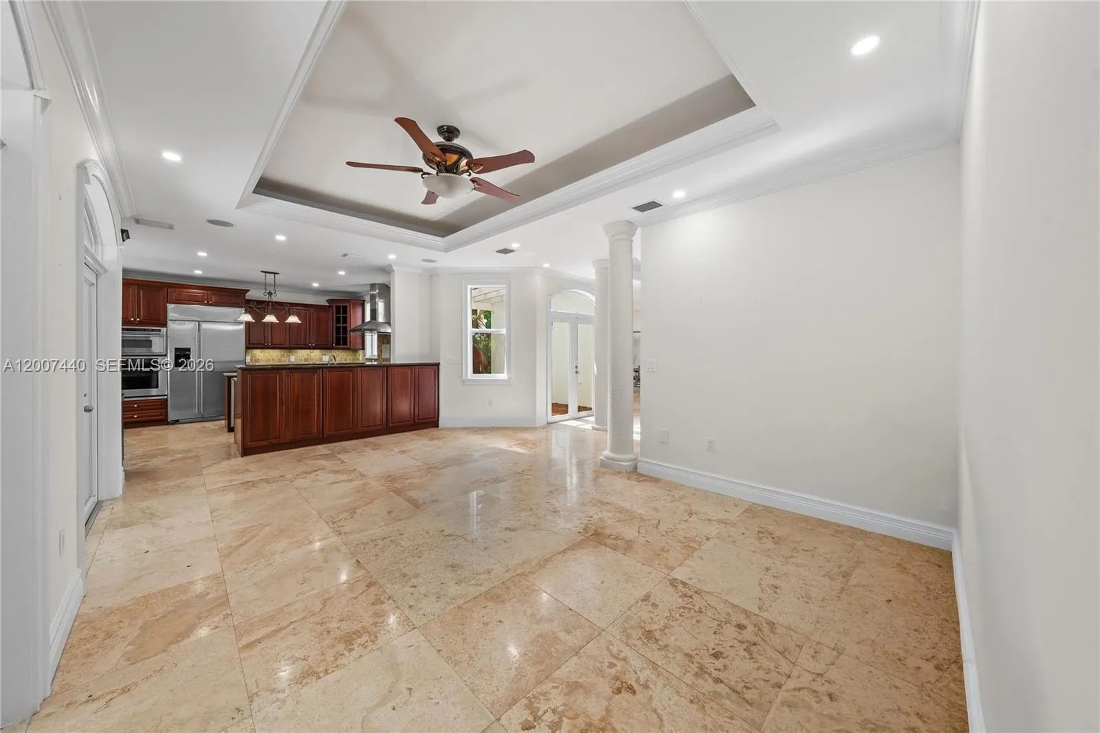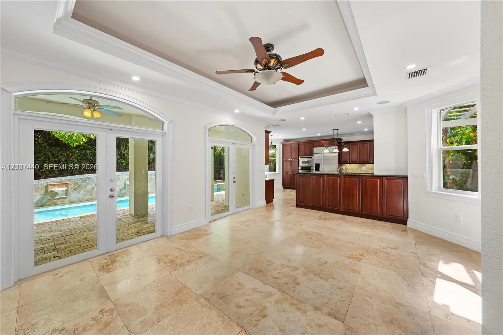 Premier S. Coconut Grove location. This elegant 2 story Mediterranean villa is the perfect Pied a Terre or primary residence in one of South Florida’s most sought after neighborhoods. Sorrounded by lush tropical landscapes, this gated and private home offers a unique architectural design that blends luxury and serenity. The main living area presents a dramatic sweeping staircase, soaring double height ceiling with a multitude of windows allowing for an abundance of natural light, formal dining room, private outdoor patio, generous chefs kitchen w/ breakfast nook open to the family room overlooking the pool & covered patio area. Secluded above are 4 sophisticated yet cozy bedroom suites all w/ warm natural wood floors and picturesque windows welcoming natures beauty.