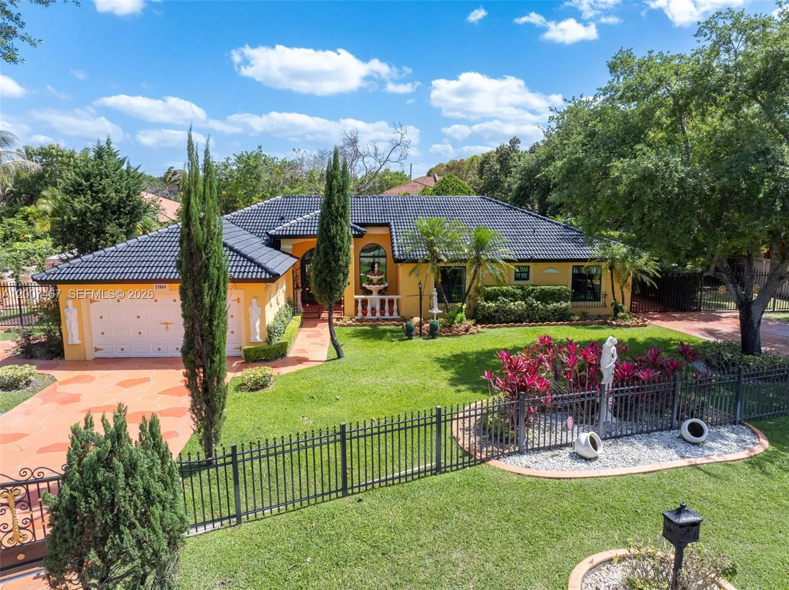 Welcome to 15860 SW 287 St, a spacious 4-bedroom, 2-bathroom home situated on an expansive 20,000+ sq ft lot, offering privacy, comfort, and beautifully maintained surroundings. This residence features high ceilings that enhance the open and airy feel throughout the living spaces.rnrnThe home includes a fully equipped eat-in kitchen, along with a separate dining room that is perfect for hosting gatherings and entertaining guests. Thoughtfully designed for both everyday living and special occasions, the layout offers great flow and functionality.rnrnStep outside to enjoy a private pool surrounded by lush, mature landscaping and serene garden views, creating a peaceful outdoor retreat. The property is fully gated, including a gated backyard, providing added security and privacy. With ample outdoor space and impressive features throughout, this home offers a perfect blend of elegance, functionality, and tranquility.