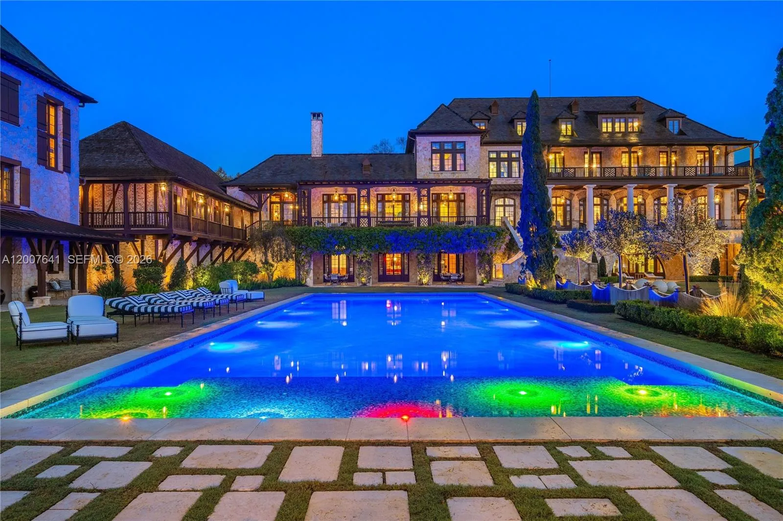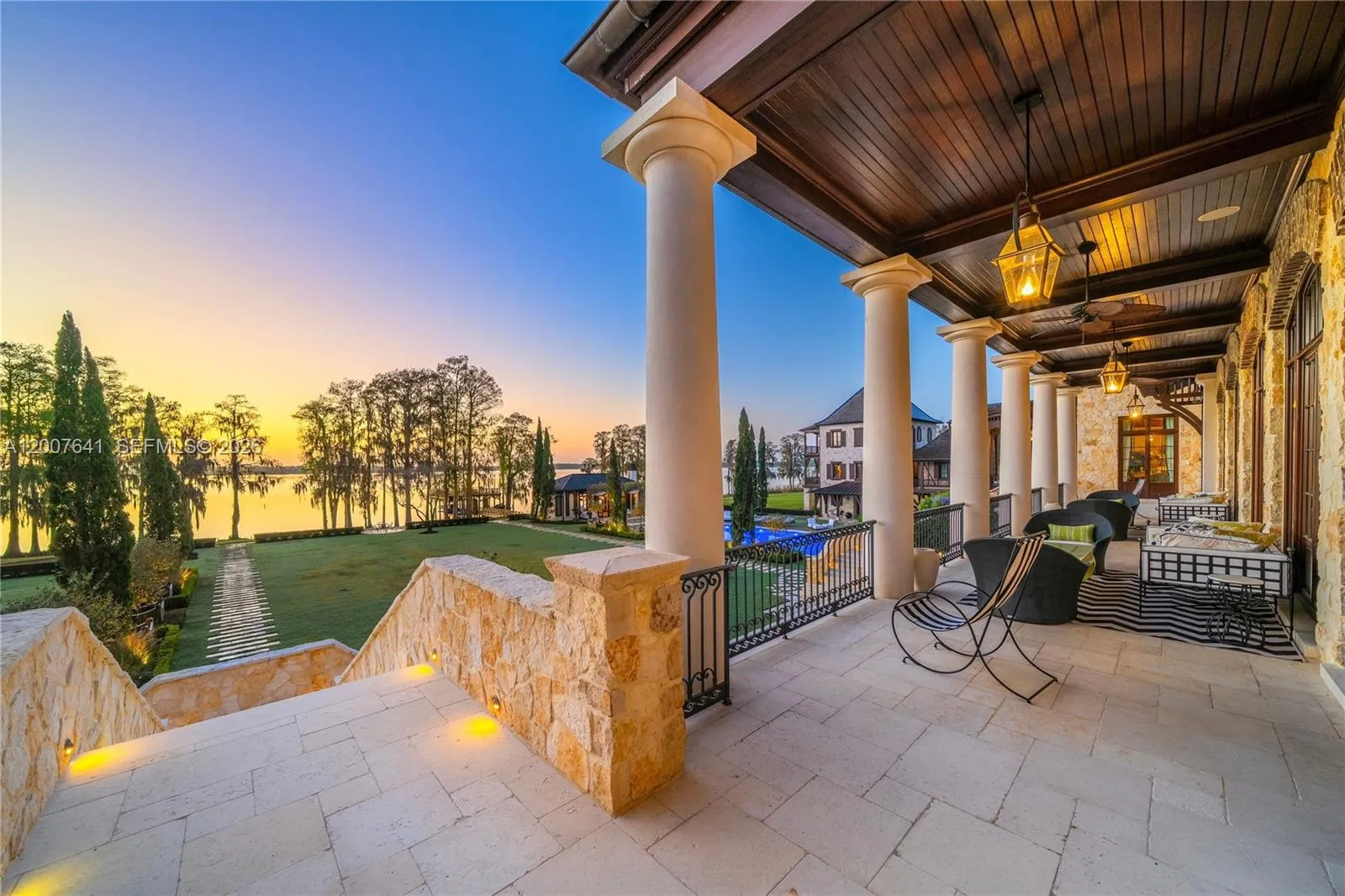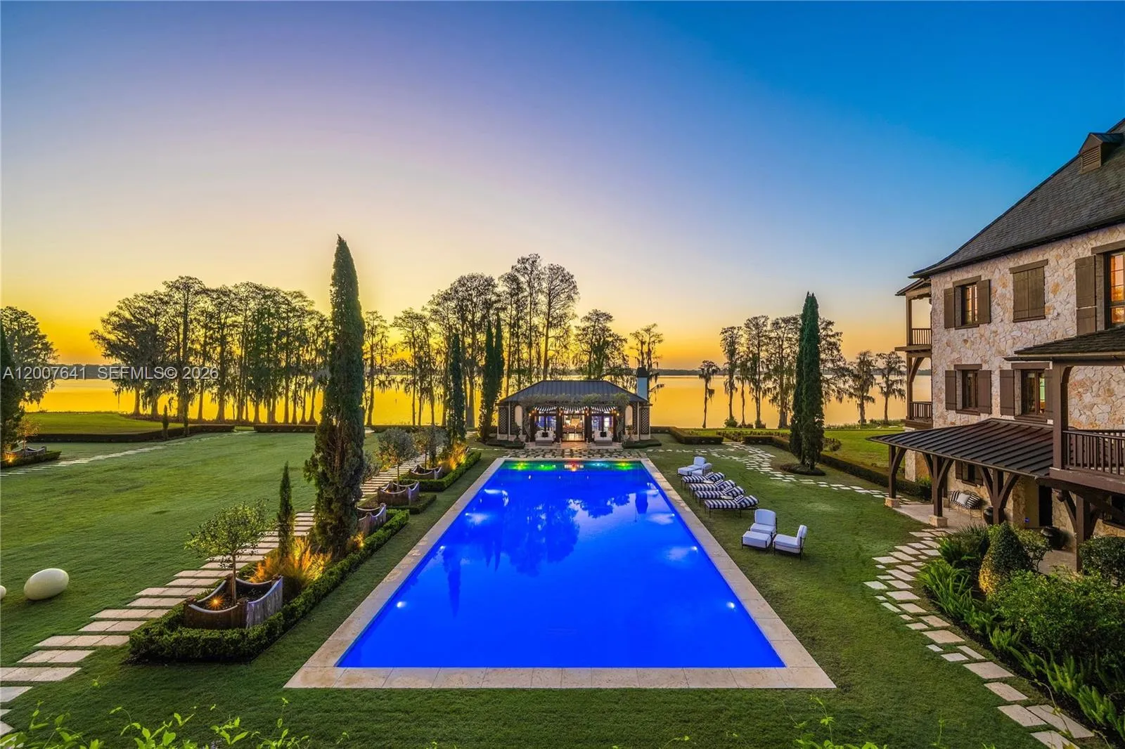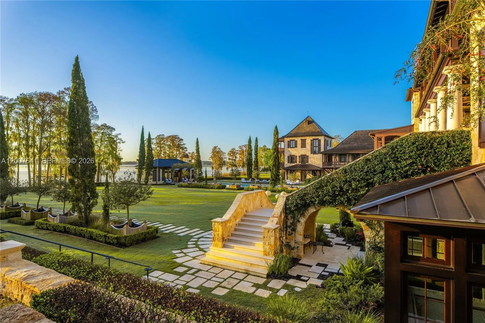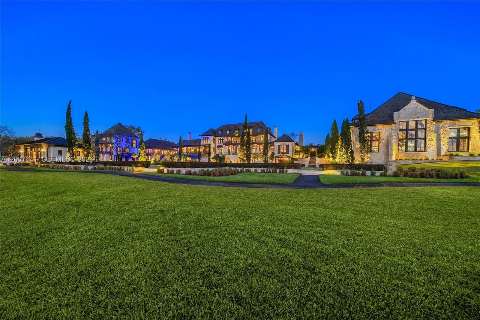One of the most significant private estates ever built in Florida and the U.S., The Oaks Estate is an extraordinary 87-acre lakefront compound on Lake Thonotosassa, with arrival by seaplane or helicopter. Ideally located 10 min. to the executive airport and 20 min to Tampa, this authentic French Normandy château offers unmatched scale, privacy, and permanence. A 36-acre stone-walled compound anchors the estate, complemented by a 51-acre greenbelt reserve. Entry begins at a gas lamp–lit guardhouse, leading beneath mature oaks to a grand arrival of fountains and a limestone-clad residence. The 42,782 SF home showcases exceptional craftsmanship in stonework, and millwork, featuring hand-scraped French oak floors in Versailles and herringbone patterns. The grand salon with pillowtop limestone floors, opens through a gallery of 12ft arched mahogany doors to terraces framed by solid limestone columns, an architectural feat rarely seen in residential setings. The culinary wing features bespoke La Cornue Cheateau appliances, a butler’s kitchen, and family room.The Oak Room lounge offers a full service bar, wine storage, limestone fireplace and concealed theater. AWow factors: a 24-car automotive museum with a floating glass boardroom, bowling alley, billiards, cinema, wellness center with gym/spa, hammam/sauna, and indoor saltwater pool. Outdoors: 72′ pool, pool house, go-kart circuit, boathouse, 1 mile jogging path, pro-equestrian, and operations comopund with automotive workshop.