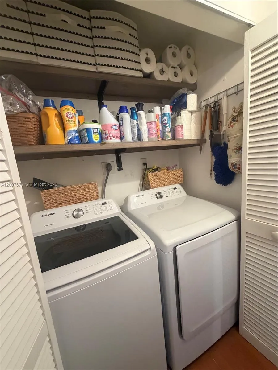 Move-in ready and well maintained! This spacious 1/1 features a functional floor plan highlighted by modern kitchen and bathroom. The kitchen shines with stainless steel appliances and contemporary cabinetry, while the shared en-suite bathroom offers a seamless flow for guests and residents alike. Key upgrades include a 4-year-old A/C, 2 years old water heater, and an in-unit laundry area with full-size appliances. Residents enjoy access to a community pool, clubhouse, and playground in a prime location near Pembroke Lakes Mall and I-75, many restaurants and supermarkets.rnP.S. Disclosure: Listing agent is related to the Property owner.