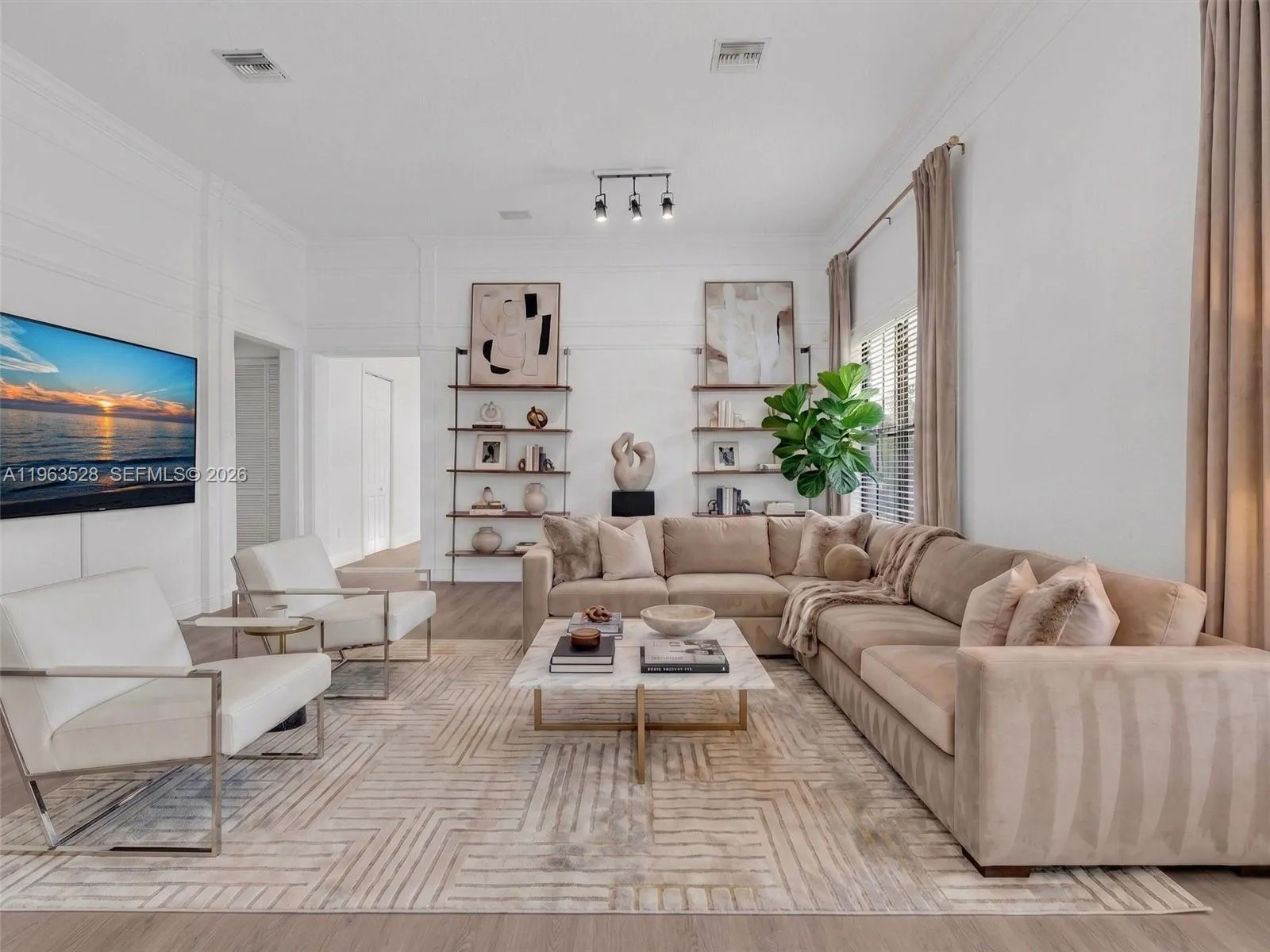 Beautiful 4-bedroom, 3-bathroom single-family home located in Cooper City’s most sought-after gated community of Monterra. This spacious residence features a bright open-concept floor plan enhanced by stunning 36×36 marble and wood flooring throughout. The luxurious primary suite boasts a spa-like bathroom with designer faucets and toilet, a Jacuzzi tub, and a built-in TV for ultimate relaxation. Additional upgrades include crown molding, hurricane-impact glass, a two-car garage, and surround sound throughout. The private backyard oasis showcases professionally designed landscaping, creating the perfect retreat for outdoor living and entertaining. Monterra offers resort-style amenities, including tennis and basketball courts, a fitness center, and a dog park. Ideally located near A+ rated schools, shopping, dining, and major highways in the heart of Cooper City.