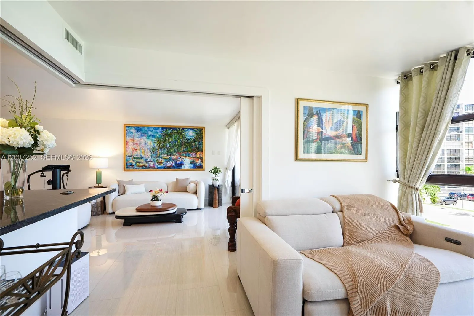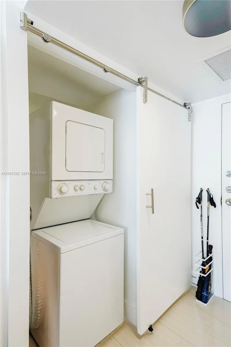 Stunning fully renovated 2BD/2BA residence showcasing refined modern design and breathtaking Intracoastal, pool, and tennis views. This turnkey home features a sleek open-concept kitchen with premium cabinetry, elegant finishes, and a clean, contemporary aesthetic enhanced by smooth ceilings throughout. Expansive floor-to-ceiling windows flood the space with natural light while capturing picturesque water views and passing yachts. Both bathrooms are beautifully redesigned with sophisticated walk-in glass showers. The second bedroom is thoughtfully designed with smart sliding walls, offering seamless flexibility as a private suite or an open den. A rare and highly desirable feature, the unit includes a washer and dryer inside.rnrnTowers of Oceanview East offers a waterfront lifestyle with a heated pool along the Intracoastal, BBQ area, tennis court, fitness center with sauna, library, party room, and bike storage—designed for both relaxation and active living.