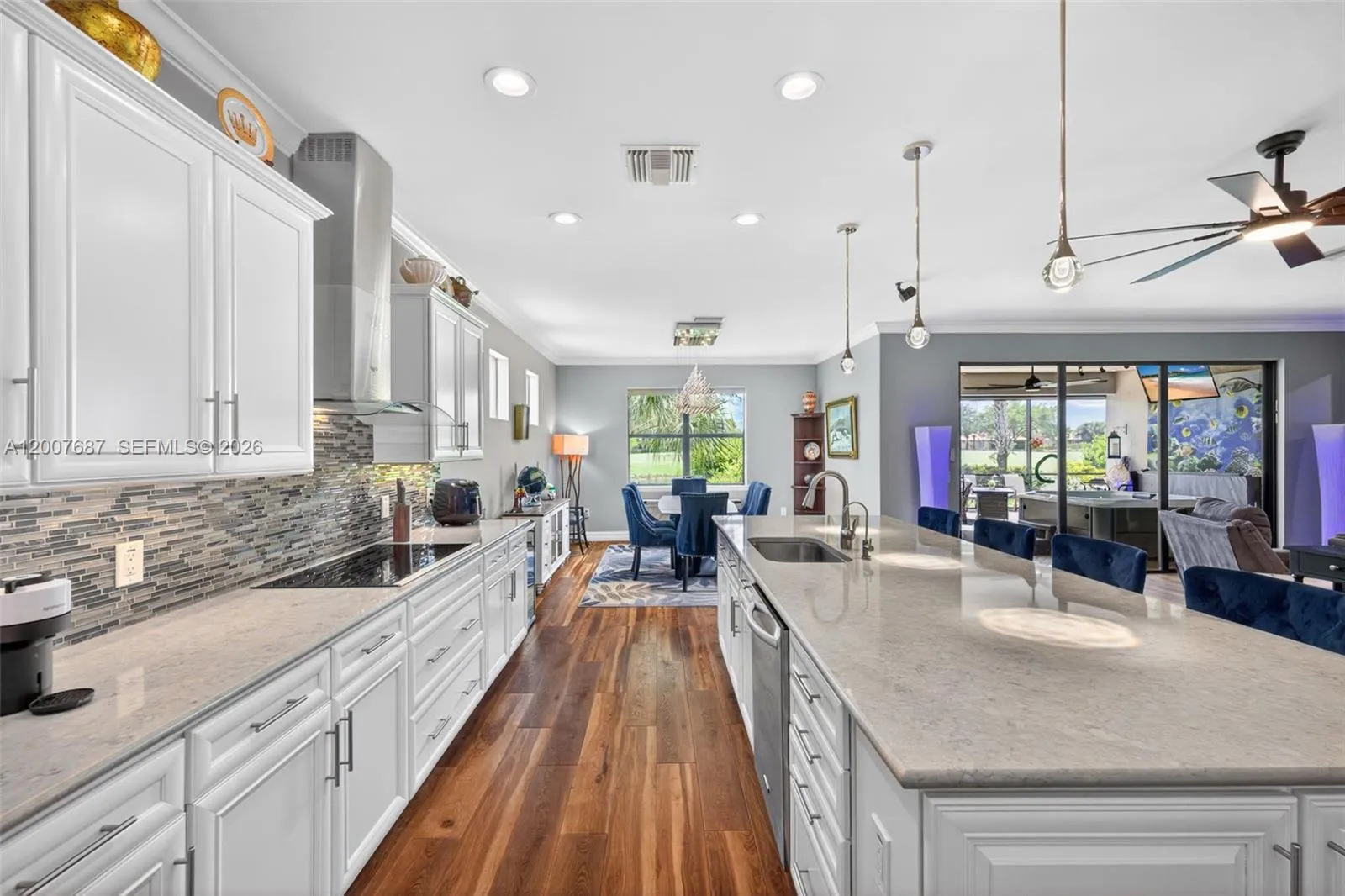 Experience refined living in this coveted PINNACLE model in the gated 55+ Del Webb Naples resort community, offering light-filled interiors and STUNNING LAKE AND GOLF COURSE VIEWS. This 3BR + Den, 3BA, 3-car home features HIGH CEILINGS, CROWN MOLDING, and waterproof COREtec LUXURY vinyl flooring throughout. The chef’s kitchen includes white cabinetry with PULL-OUTS, stainless appliances, reverse osmosis, WALK-IN PANTRY, coffee nook, & an impressive 10’+ Silestone quartz island with storage and seating perfect for entertaining. The den features CUSTUM BUILT-INS for a polished workspace. The OVERSIZED PRIMARY SUITE showcases tray ceilings and serene water and golf views, plus a SPA-LIKE BATH with makeup vanity, double sinks, step-in shower, private toilet with integrated bidet, & a LARGE WALK-IN CLOSET. Guests enjoy privacy with an EN-SUITE SECOND BEDROOM and a third bedroom with a CUSTOM MURPHY BED, both with WALK-IN CLOSETS—ideal for MULTI-GENERATIONAL LIVING. A well-appointed LAUNDRY ROOM offers EXTRA STORAGE, sink, & high-capacity machines. TRIPLE SLIDERS open to an OUTDOOR OASIS with expanded SCREENED lanai, custom WATERFALL, LED lighting, bubbling SPA, & gorgeous SOUTHWESTERN SUNSETS. Added peace of mind includes 2 ELECTRIC ROLLDOWN SHUTTERS, hurricane panels, 10,000W GENERATOR, EPOXY garage flooring, & abundant STORAGE. Enjoy Del Webb’s exceptional amenities & vibrant lifestyle of Ave Maria in this premier 55+ golf community. (Golf cart & select furnishings negotiable).
