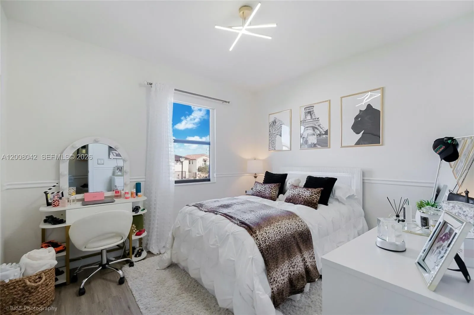 Elegant two-story home in gated Madison Pointe at Central Park. This 4-bed, 3-bath home offers 2,548 sq. ft of living area (3,025 total, 2,580 adjusted) with one bed and bath on the first floor. Situated on a premium 4,746 sq. ft corner lot across from the park, it features polished tile floors, open living areas, and a modern kitchen with granite countertops and stainless steel appliances. The fenced backyard includes a covered outdoor space for lounging and dining. Madison Pointe is a private community of only 64 homes with a manned gate and access to the nearby Grand Resort clubhouse. Walking distance to the clubhouse and surrounded by Doral’s premier nature preserve.