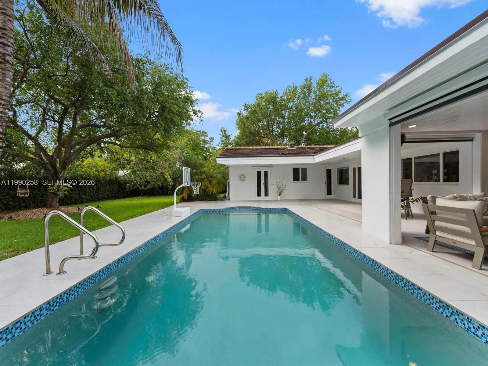 Beautifully updated 4-bedroom, 3-bathroom residence offering 3,928 total square feet on a 17,472 sq ft lot in North Palmetto Bay. Light-filled living areas feature elegant marble flooring throughout. The modern kitchen is equipped with quartz countertops, soft-close cabinetry, and premium appliances, including Miele and Liebherr, along with a reverse osmosis water filtration system.rnrnThe primary suite includes two custom walk-in closets and a spacious bathroom with dual rain shower heads, plus an adjacent office/den area overlooking the backyard.rnrnOutdoor features include a covered and screened summer kitchen, heated saltwater pool with children safety fence around it, and ample green space suitable for gatherings and outdoor enjoyment. Additional highlights include impact windows and doors, updated plumbing and electrical systems, and a two-car garage with an electric car charger. Brand new tile roof with 20 years transferable warranty. rnrnShowings starting on Monday April 27, 2026 by appointment only!