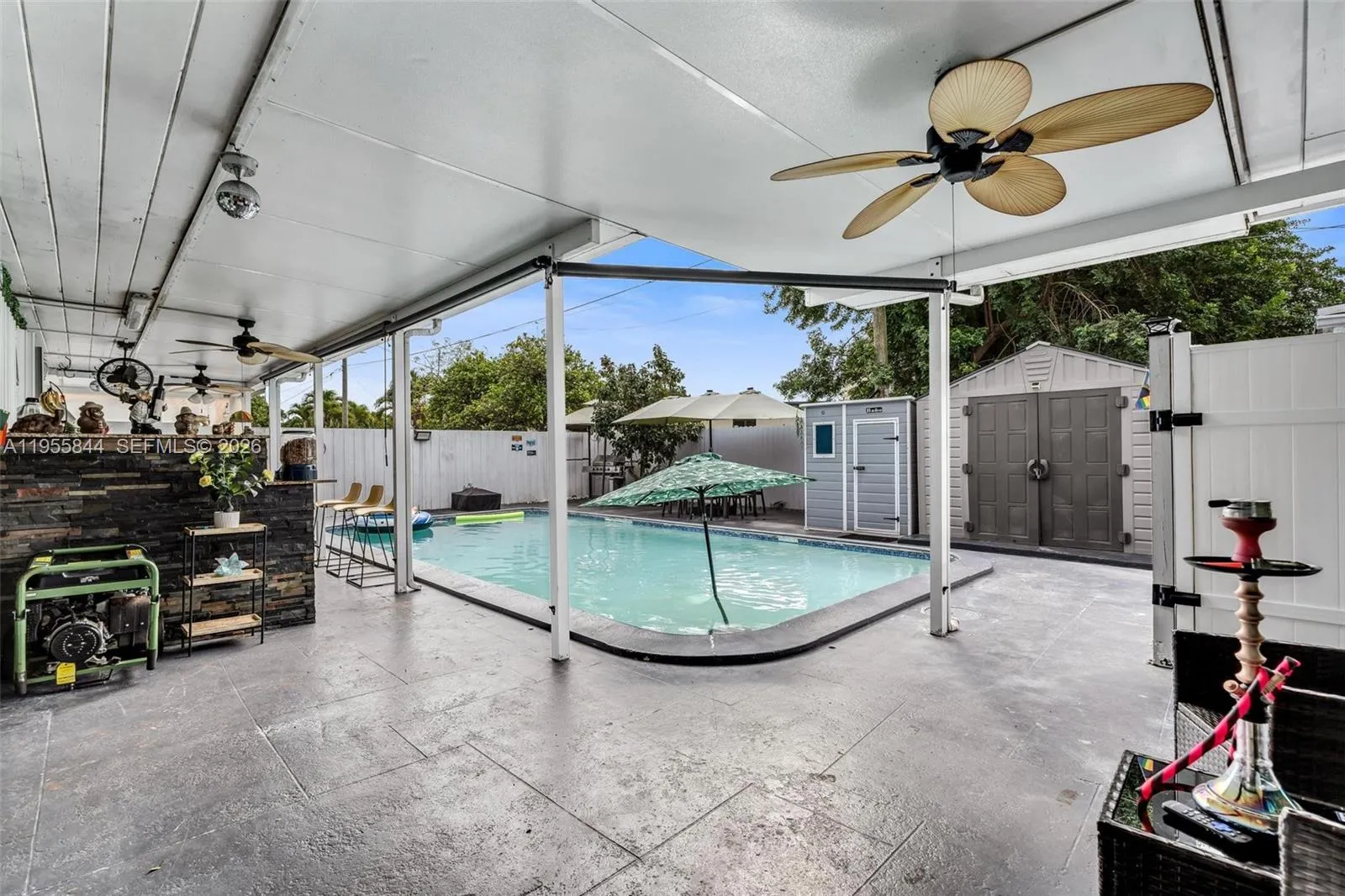 Exceptional opportunity for investors or large/multi-generational households—no HOA and a truly unique, highly functional layout. This 5-bedroom, 4-bath single-family home offers an extremely split floor plan, with nearly every bedroom featuring its own private entrance and en-suite bathroom, providing maximum privacy and flexibility. The home has been fully updated with new flooring and modern finishes throughout.rnStep outside to a private backyard oasis, complete with a full outdoor kitchen, grill, and guest bathroom—perfect for entertaining or extended stays. The garage has been converted into a separate guest house, adding additional income or living potential. Additional highlights include a spacious front yard, extended driveway accommodating up to six vehicles plus a carport, and hurricane panels for all windows and doors. Gas service for the stove, water heater, and dryer adds efficiency and convenience. Ideally located just minutes from the Turnpike, offering easy access for commuters. This one-of-a-kind layout is truly a must-see to appreciate.