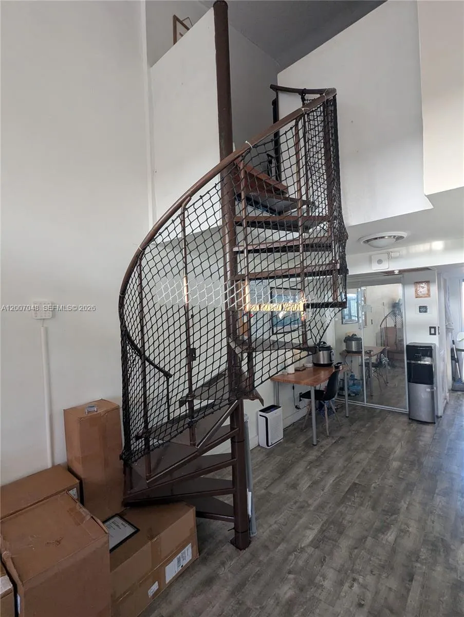 2 Story Loft Apartment. This unique unit offers 2 levels of living space accessed by a Spiral Metal Staircase. The first level is made for entertaining guests, relaxing or working from home. visually expand the living space and the granite Galley kitchen with washer/dryer hookups leads out to a large open terrace. Upstairs is a private large sleeping room with double closets and private ensuite bathroom. Under covered reserved parking. Close proximity to dining, shopping, entertainment and transportation.rn floor