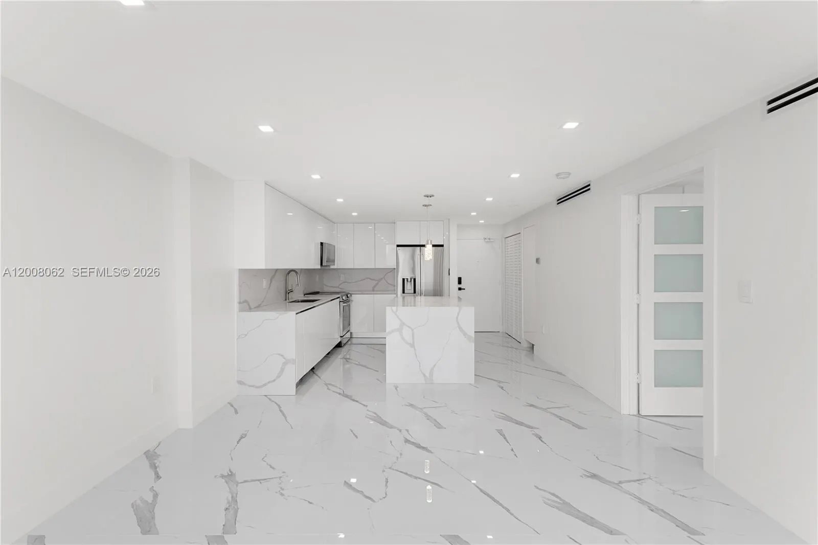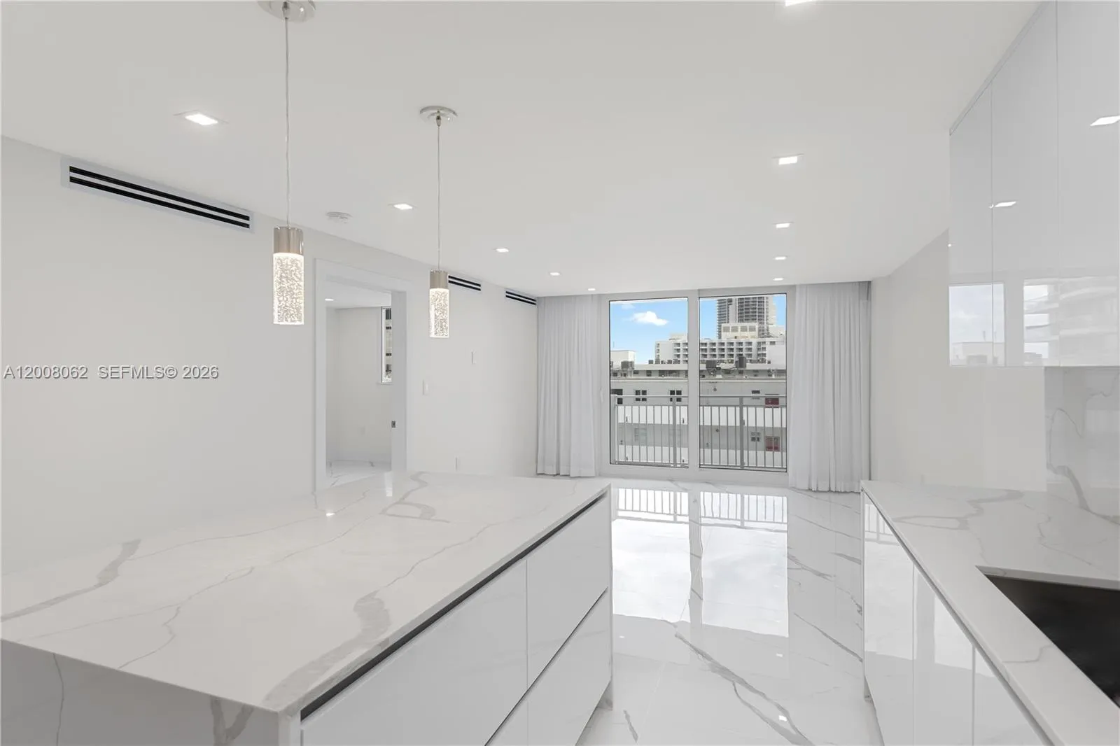 Be the first to live in this completely new exquisitely updated top of the line one bedroom apartment with balcony and parking in Oceanfront south of fifth Street newly remodeled building. All new for the sophisticated client: large format porcelain tile floors throughout, open kitchen with spectacular island, top-tier appliances including front load washer &dryer, impact windows and doors, modern lighting, remote control blinds, custom closets more. This is a rare offering. Cable and Internet included in rent along with heated Oceanfront pool, new ocean view exercise room, 24 hour security, and gated covered parking. No pets please.
