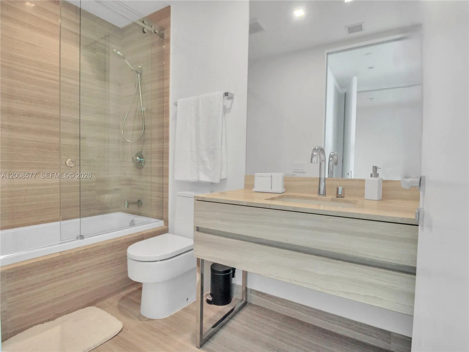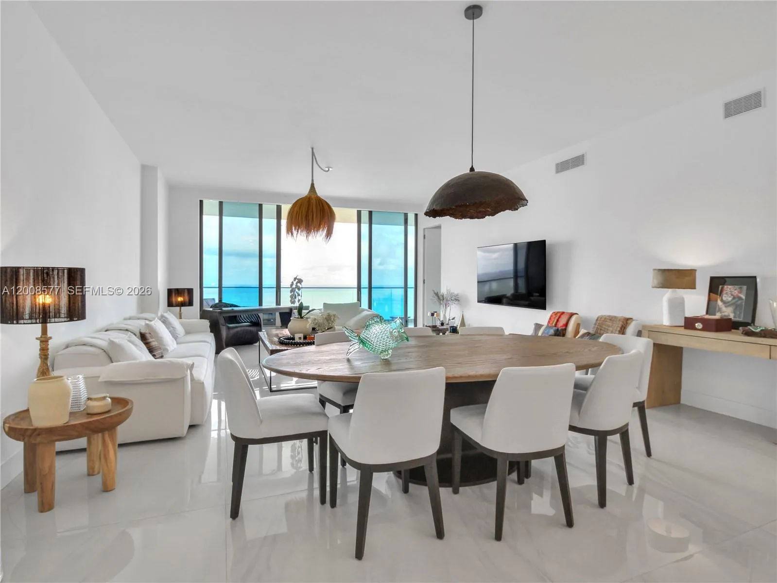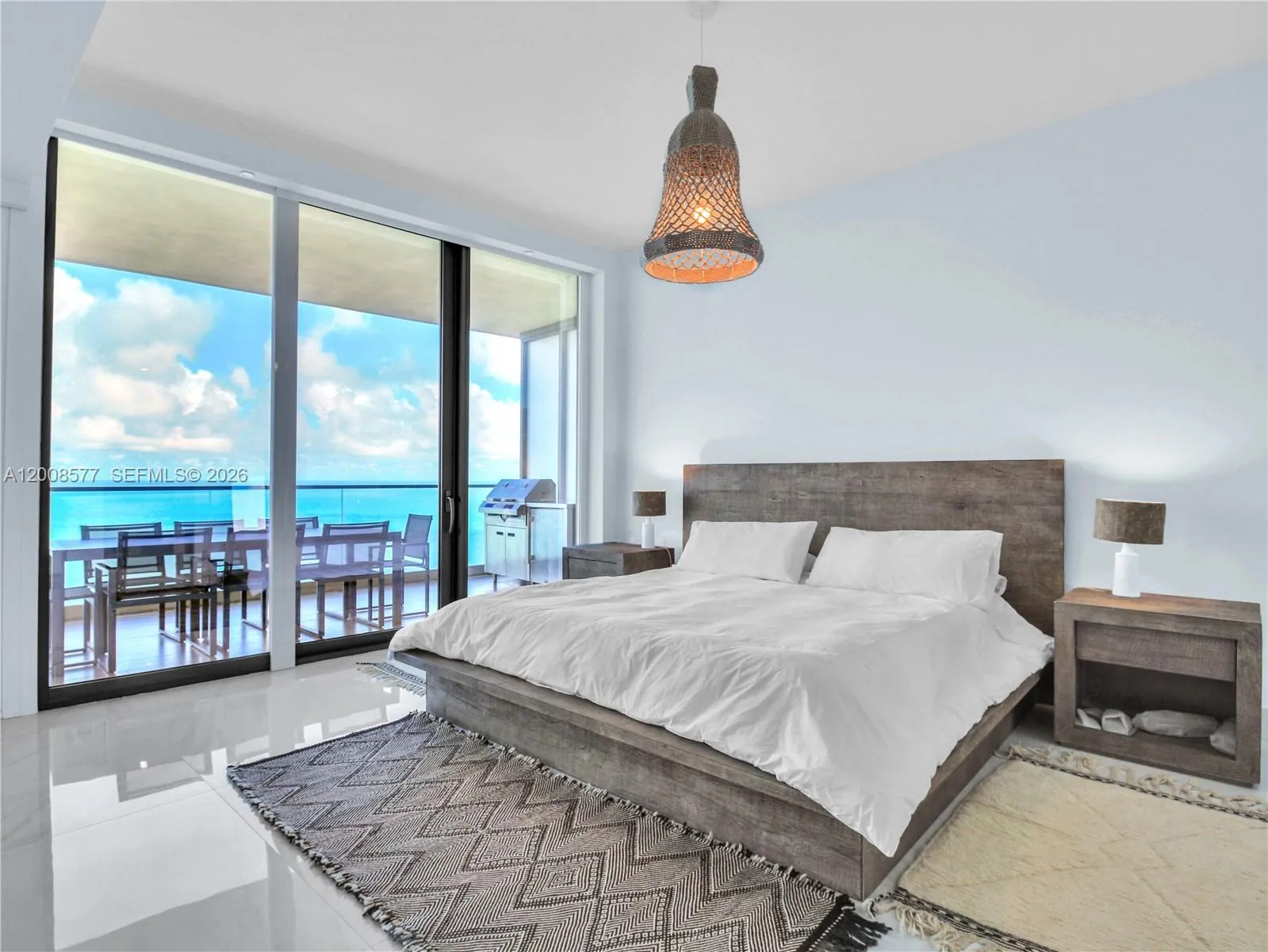 Short-term rental only: minimum 3 months, available from May 20 and from December 10. Modern European design, move-in ready, fully furnished Armani Residence 4303. Enjoy ocean and bay views in this 3BD/3.5BA + den with elegant finishes, floor-to-ceiling glass, two private balconies: one with a summer kitchen overlooking the ocean, and a west-facing terrace with Intracoastal views, ideal for sunsets. Porcelain floors, European-style kitchen with premium finishes and custom design, and marble baths. Located at the prestigious Residences by Armani/Casa in Sunny Isles Beach offering world-class amenities: beach & pool service, spa, private cafe & restaurant, movie theater, wine & cigar lounge, game room & kids room.