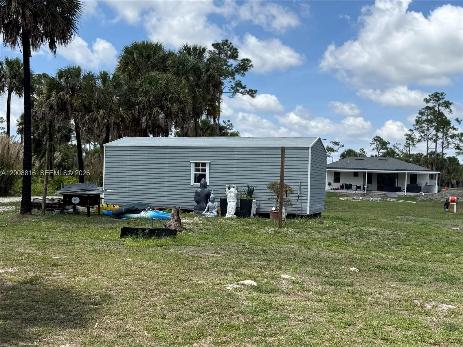 Rare opportunity in Golden Gate Estates offering 2.27 acres of privacy, freedom, and unlimited potential. This oversized home delivers the space buyers are actively searching for perfect for creating a custom estate residence with room for a pool, guest house, workshop, RV, boat storage, and expansive outdoor living.rnA fully permitted 12×30 (approx. 365 sq ft) shed is included and professionally installed with an approved anchoring system in compliance with permit requirements and local building standards, providing immediate usable space and added value from day one.rnEnjoy the advantages of no HOA, flexible land use, and true estate-style living, all while remaining conveniently close to shopping, schools, and major roadways. A hard-to-find combination of acreage, flexibility, and location.