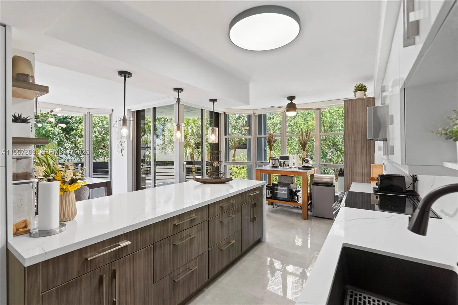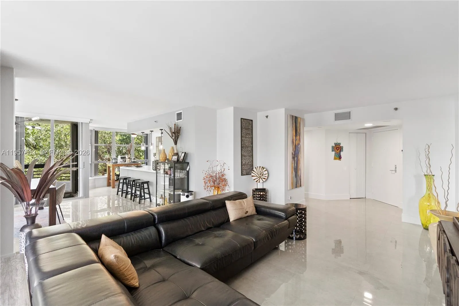 Wake up to tranquil Intracoastal views and sun-filled living in this contemporary corner residence located within Mystic Pointe’s resort-style waterfront community. Designed to maximize light and flow, the expansive layout is framed by floor-to-ceiling windows and opens seamlessly to a wrap-around balcony, creating the perfect setting for morning coffee, sunset relaxation, or entertaining. The home’s open kitchen anchors the living space with sleek finishes, custom cabinetry, and a modern aesthetic that blends functionality with understated elegance. The primary suite offers a private retreat, complete with a spa-inspired bath and generous walk-in closet, delivering everyday comfort with a luxury feel. Enjoy peace of mind and convenience with hurricane shutters, in-unit laundry, additional storage, and two parking spaces, all within a secure, full-service building featuring concierge, 24/7 security. Mystic Pointe offers a true resort lifestyle in Aventura, with amenities including a pool, fitness center, sauna, jacuzzi, tennis and pickleball courts, dog park, valet service, EV charging stations, and an on-site restaurant. Marina spaces for rent and purchase for those who have a boat. Ideally located just minutes from Aventura Mall, beaches, and houses of worship, this residence delivers refined waterfront living with unmatched convenience.