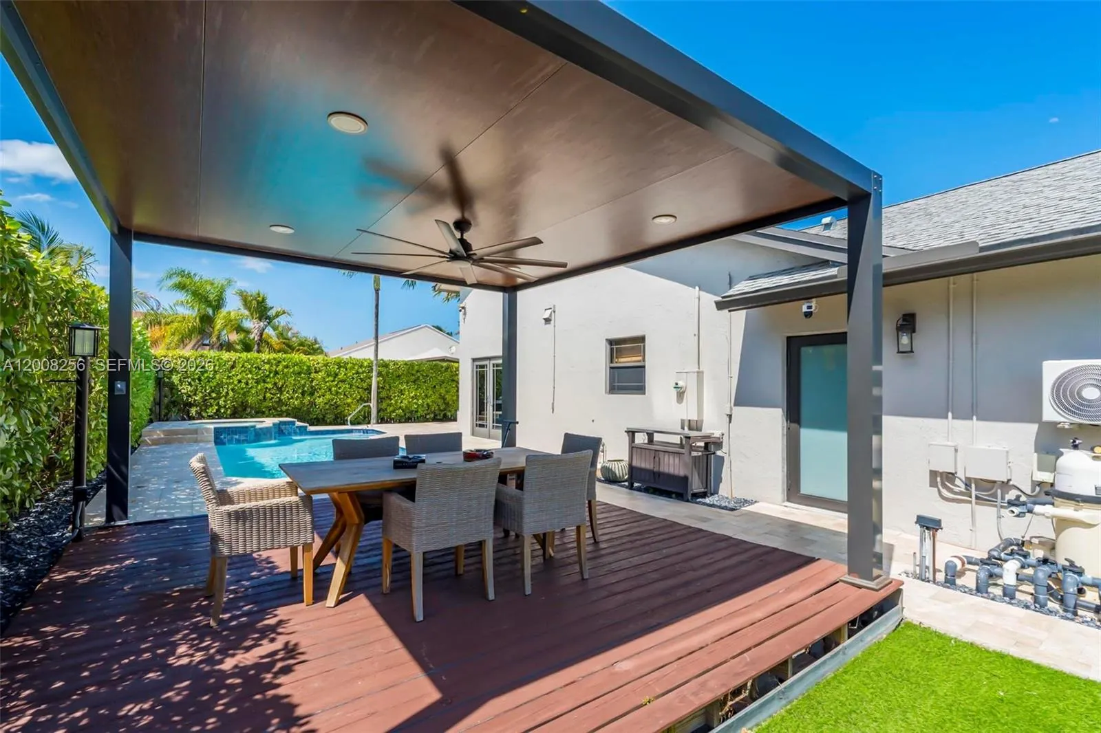 Welcome to this beautifully remodeled 3-bedroom, 2-bath, 2 car garage residence ideally situated on a spacious corner lot in the heart of Dania Beach. Step inside to discover a thoughtfully updated interior featuring recessed lighting and a modern open feel. The chef’s kitchen is a standout, complete with stainless steel appliances, double oven, dishwasher, industrial-style sink, pot filler, and a dedicated coffee bar—designed for both everyday living and entertaining. The spacious primary suite offers a true retreat with a spa-inspired bathroom, custom built-ins, and generous walk-in closet. Additional upgrades include high-impact windows, doors, and garage door for peace of mind. Major systems have been well maintained, including a newer A/C unit, water heater around 4 years old, and a roof approximately 10 years old.rnStep outside to your private oasis featuring a fully remodeled saltwater pool and jacuzzi, along with an expansive outdoor entertaining area perfect for hosting or relaxing in style. This home is just minutes from the renowned Dania Pointe, pristine beaches, vibrant restaurants, and provides easy access to major roadways for ultimate convenience. This home truly has everything you need and more—an exceptional opportunity you must see and experience for yourself.