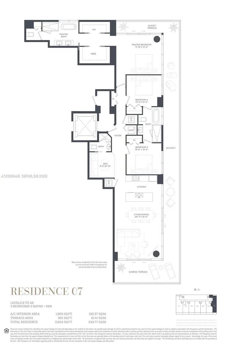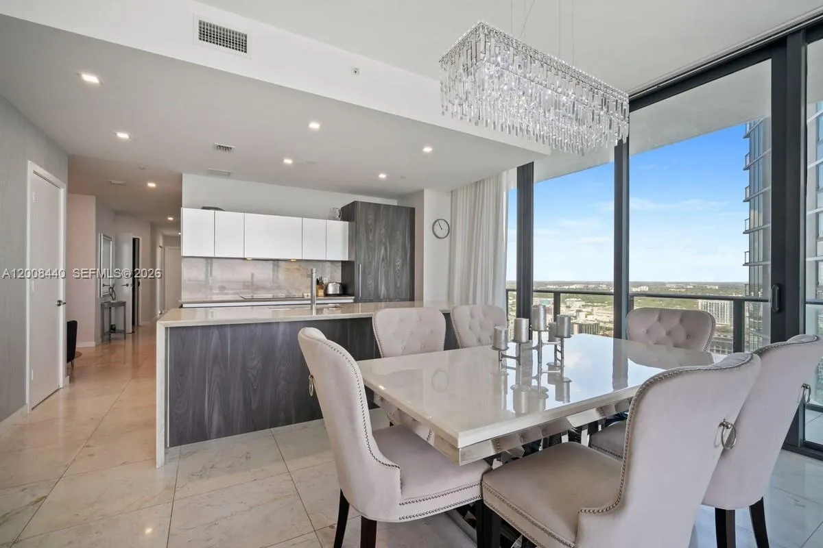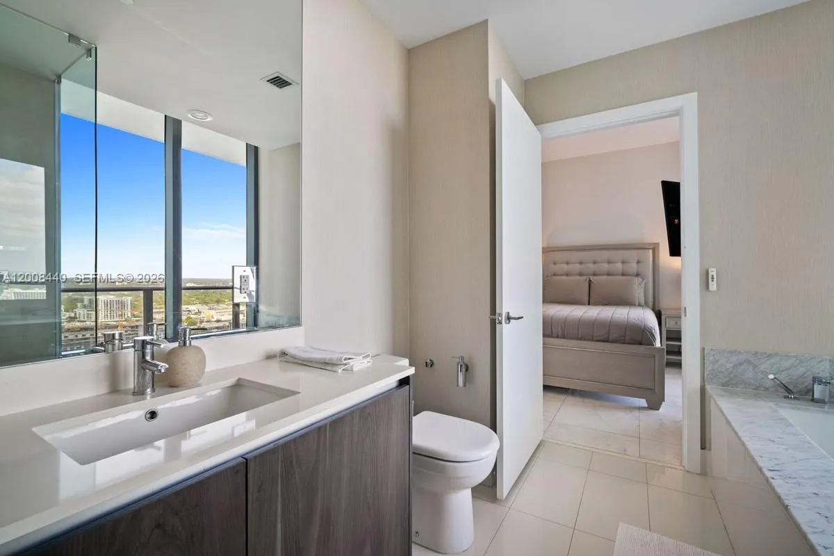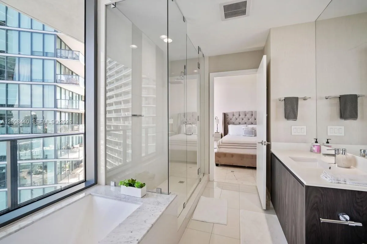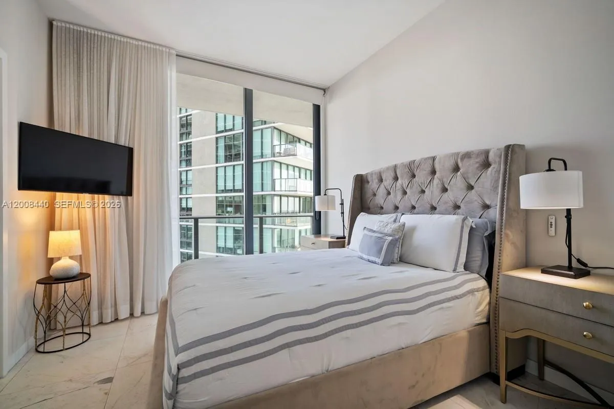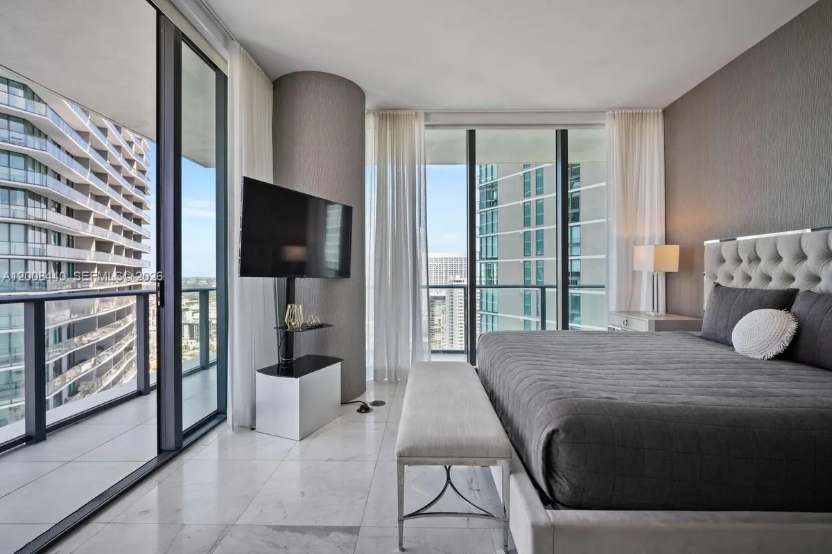 Spectacular furnished corner unit for rent in Gran Paraiso. 3 Bed + Den / 3 Bath with a large wraparound terrace offering stunning sunrise and sunset views over the bay, ocean, and skyline. Private elevator entry, 9-ft ceilings, and floor-to-ceiling glass. Chef’s kitchen with Sub-Zero & Wolf appliances, Italian cabinetry, plus electric blinds, blackout shades, and custom closets.rnrnEnjoy resort-style living with a bayfront pool, spa, state-of-the-art fitness center, tennis courts, bowling alley, theater, and Amara Beach Club. Prime Edgewater location, minutes to Design District, Midtown, Brickell, and Miami Beach.rnAvailable June 22, 2026.